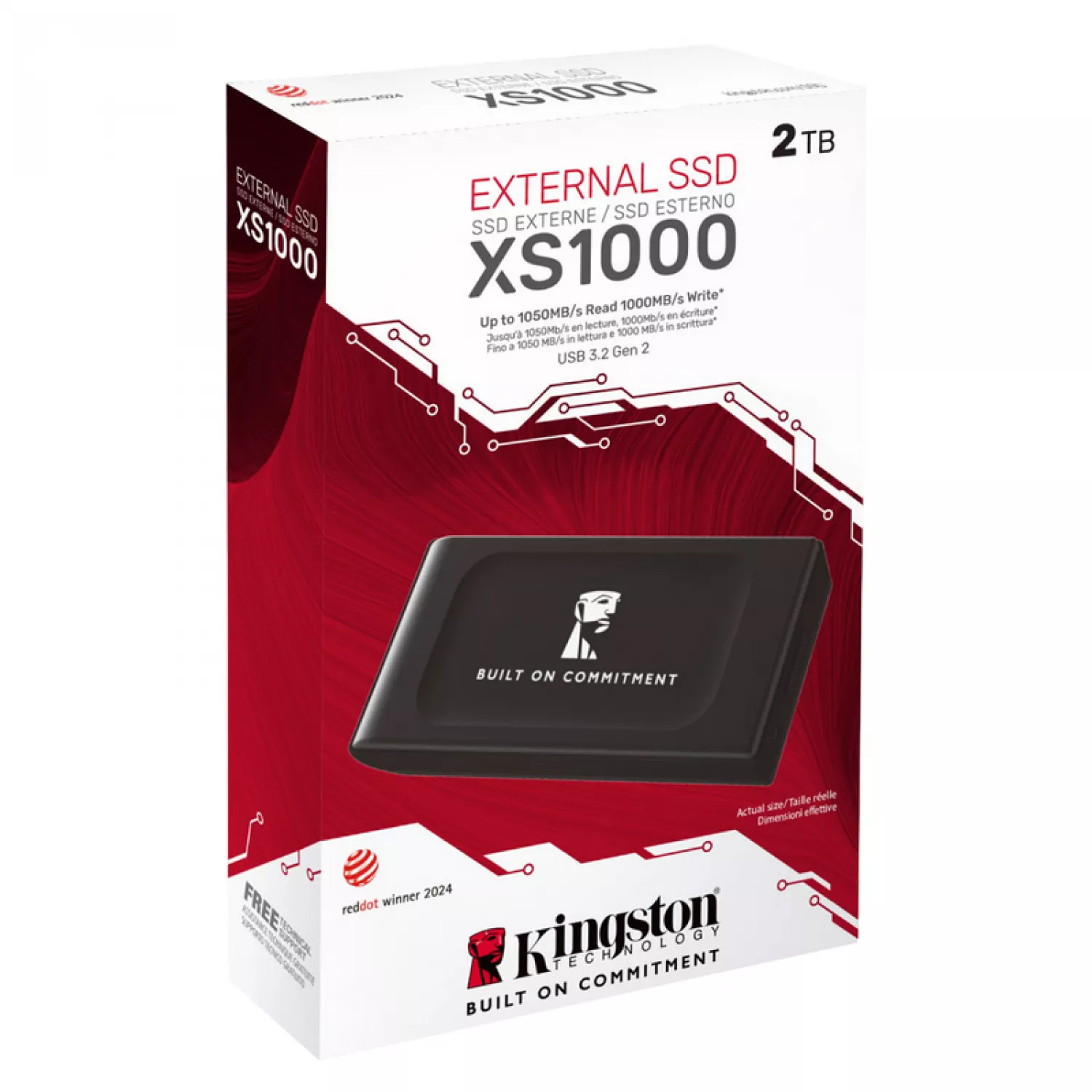 2.0TB Kingston External Portable SSD XS1000 BoC Black, USB 3.2 Gen 2 (69.5x32.6x13.5mm, 28.7g, R/W:1050/1000 MB/s) |