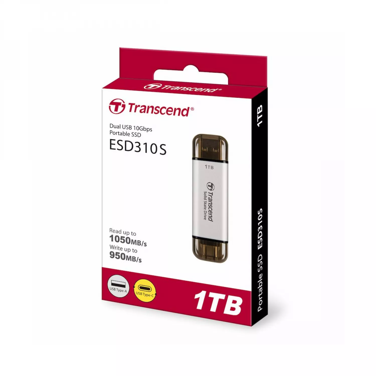 Жёсткий диск внешний transcend 1.0tb portable ssd esd310s silver, usb-a/c 3.2 (71.3x20x7.8 mm, 11g, r/w:1050/950 mb/s)