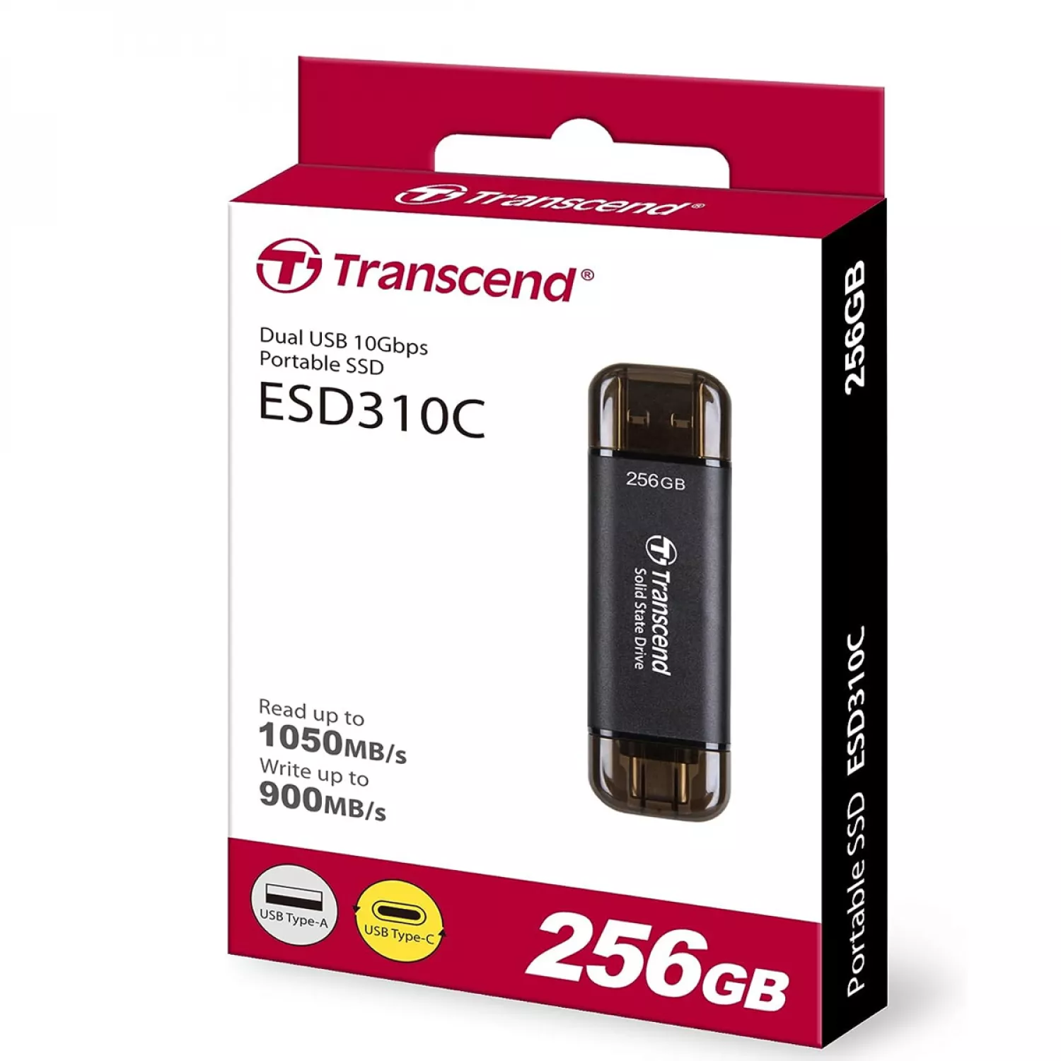 Характеристики для Жёсткий диск внешний TRANSCEND .256TB Portable SSD ESD310C Black, USB-A/C 3.2 (71.3x20x7.8 mm, 11g, R/W:1050/950 MB/s)