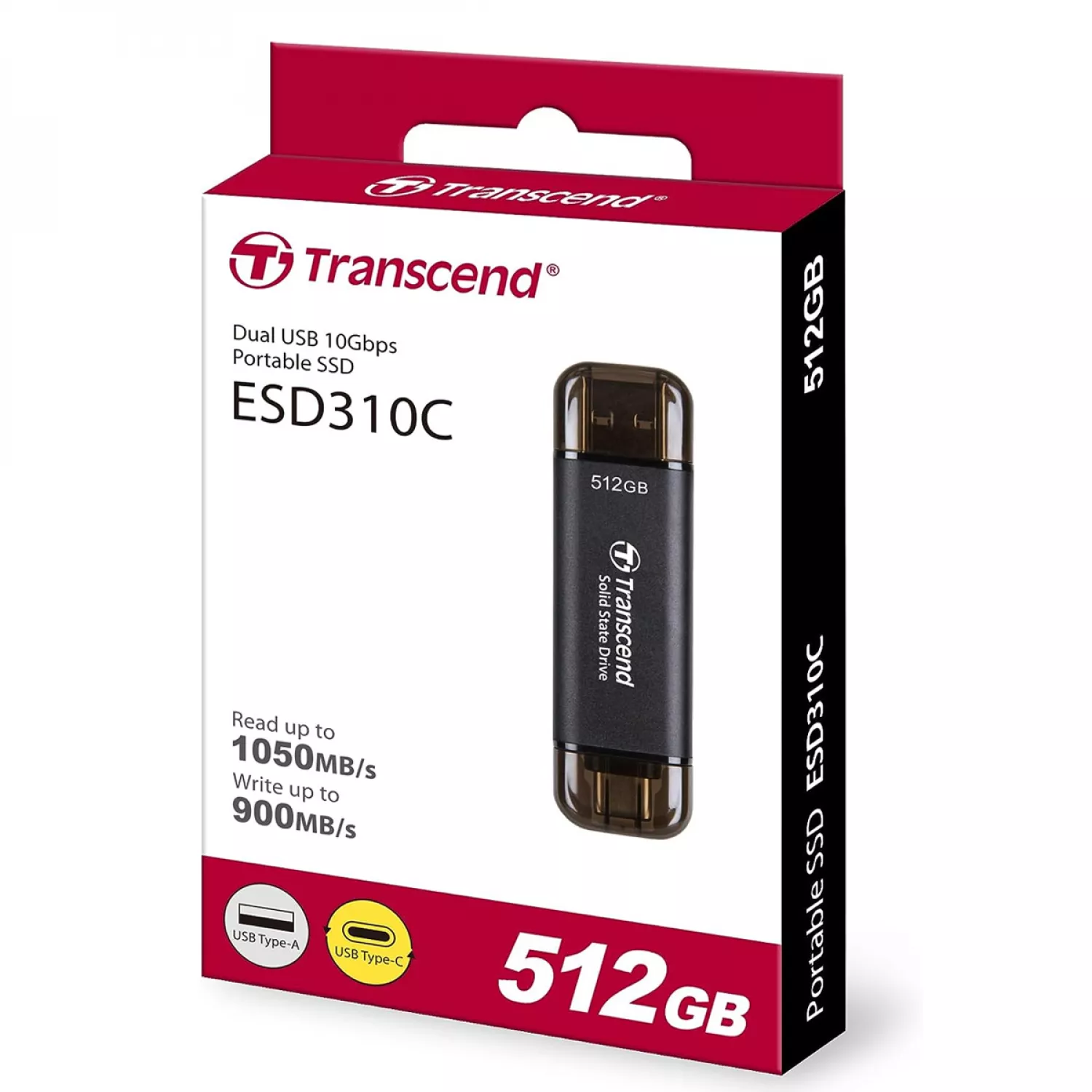 Характеристики для Жёсткий диск внешний TRANSCEND .512TB Portable SSD ESD310S Silver, USB-A/C 3.2 (71.3x20x7.8 mm, 11g, R/W:1050/950 MB/s)