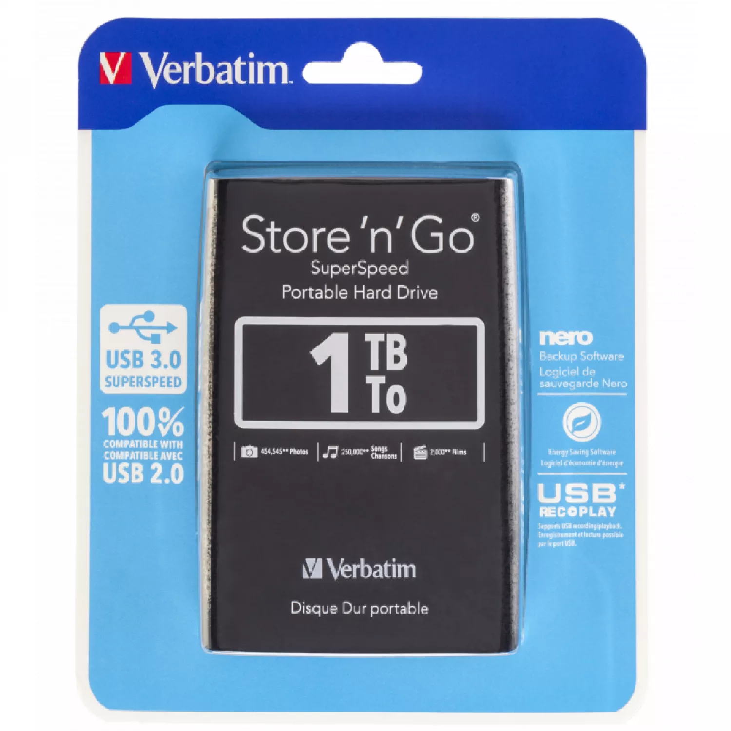 Характеристики для Жёсткий диск внешний VERBATIM 2.5" 1.0TB (USB3.0) "Store 'n' Go", Black, Nero Backup Software, Green Button Energy Saving Software