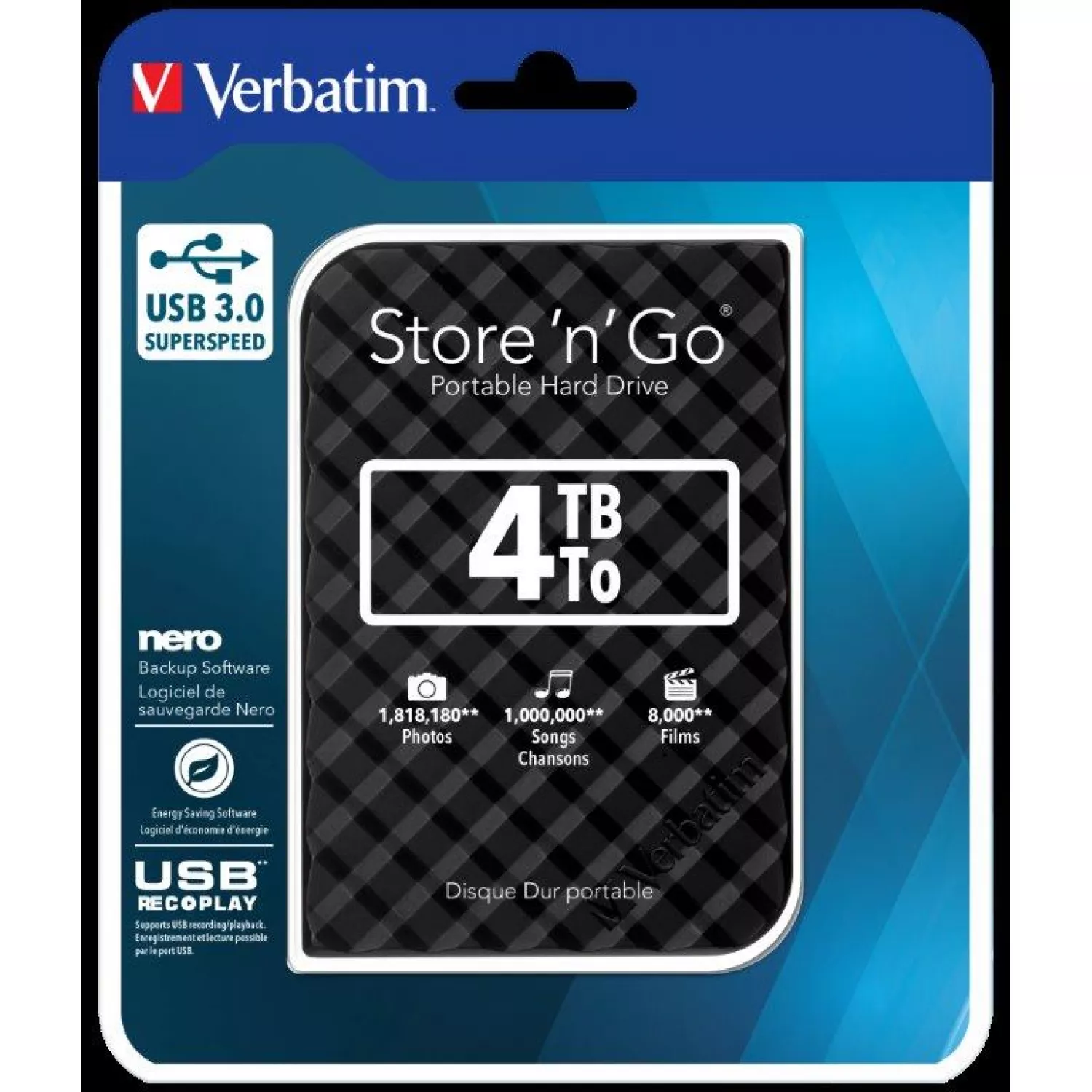 Характеристики для Жёсткий диск внешний VERBATIM STORE 'N' GO, 4.0TB, 2.5