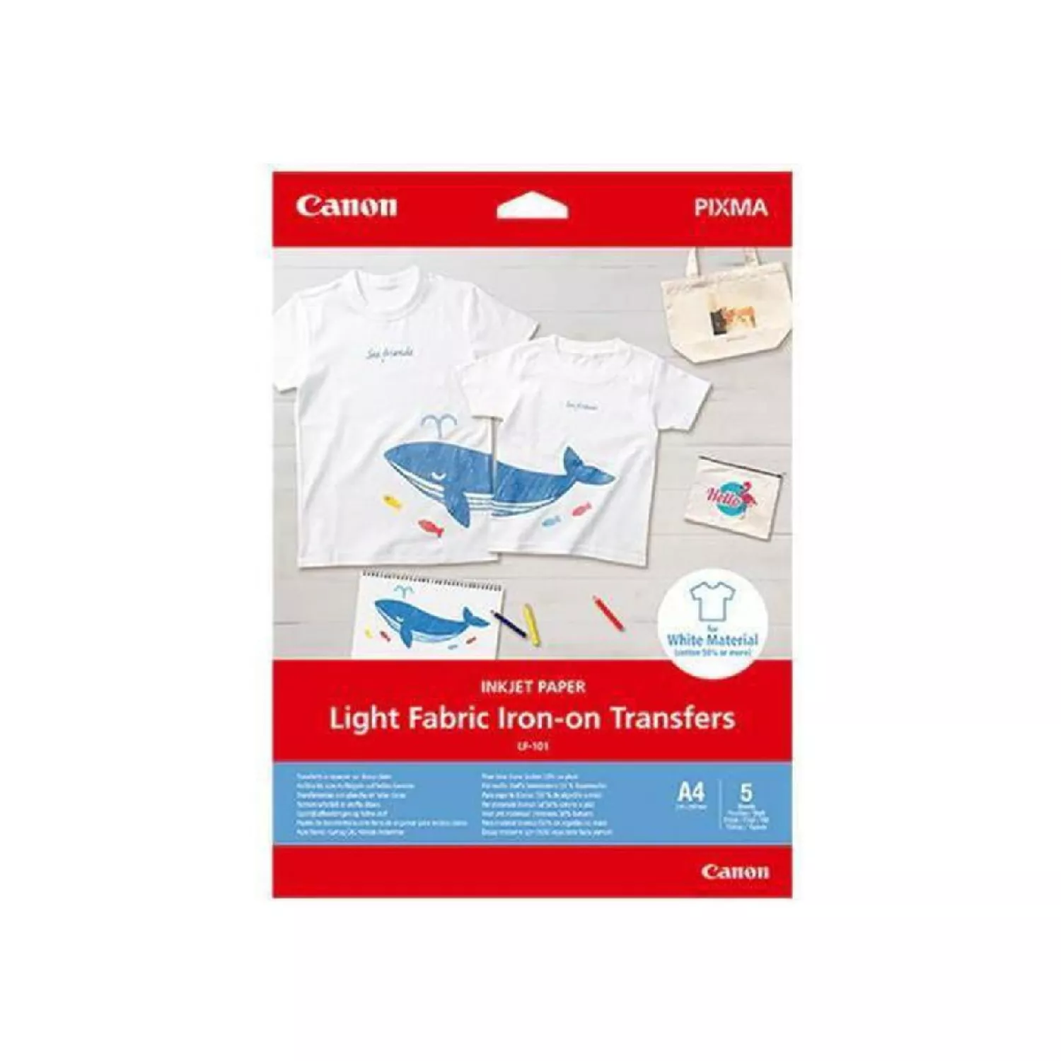 LIGHT FABRIC IRON-ON TRANSFERS LF-101 (4004C002AA), 0.170MM, 160 G/M2, A4 5 SHEETS FOR PIXMA -G/TS SERIES. |