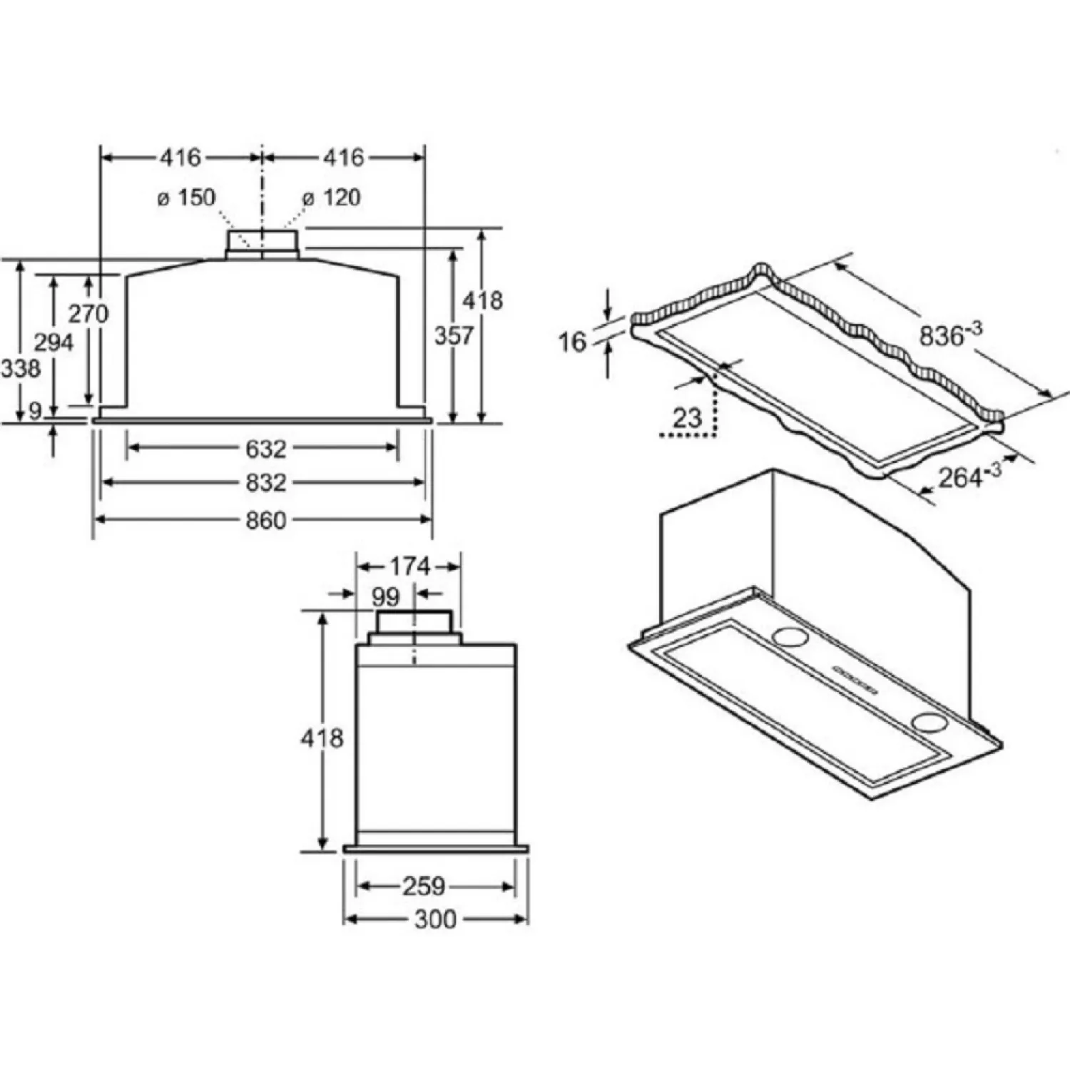Характеристики для Вытяжка BOSCH DHL885C, 227 Вт, 1 двигатель, 41 см, Нержавеющая сталь