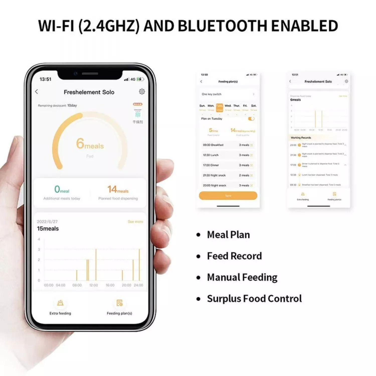 Характеристики для Кормушка для животных Petkit FRESH ELEMENT SOLO SMART PET FEEDER, WI-FI AND BLUETOOTH CONNECTION, 304 STAINLESS STEEL, CAPACITY: 3L, NORMAL DRY FOOD, FREEZE DRIED FOOD, APP CONTROL, DUAL-POWER SYSTEM, SIZE 316*167*296MM, WHITE