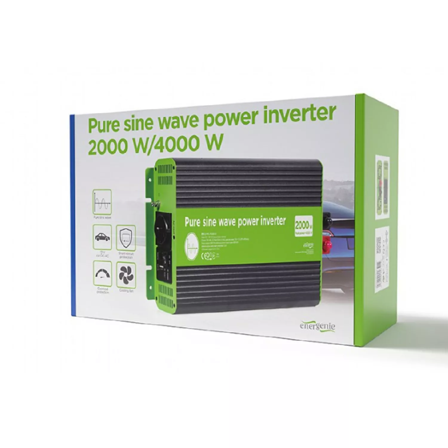 Инвертор energenie eg-pwc-ps2000-01, 12 v pure sine wave car dc-ac power inverter, 2000 w, with usb port / 5v-2.1a gmb eg-pwc-ps2000-01