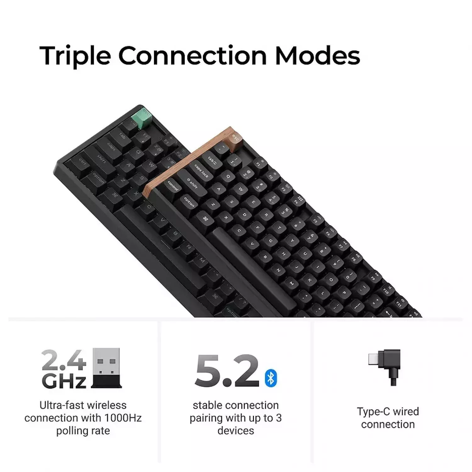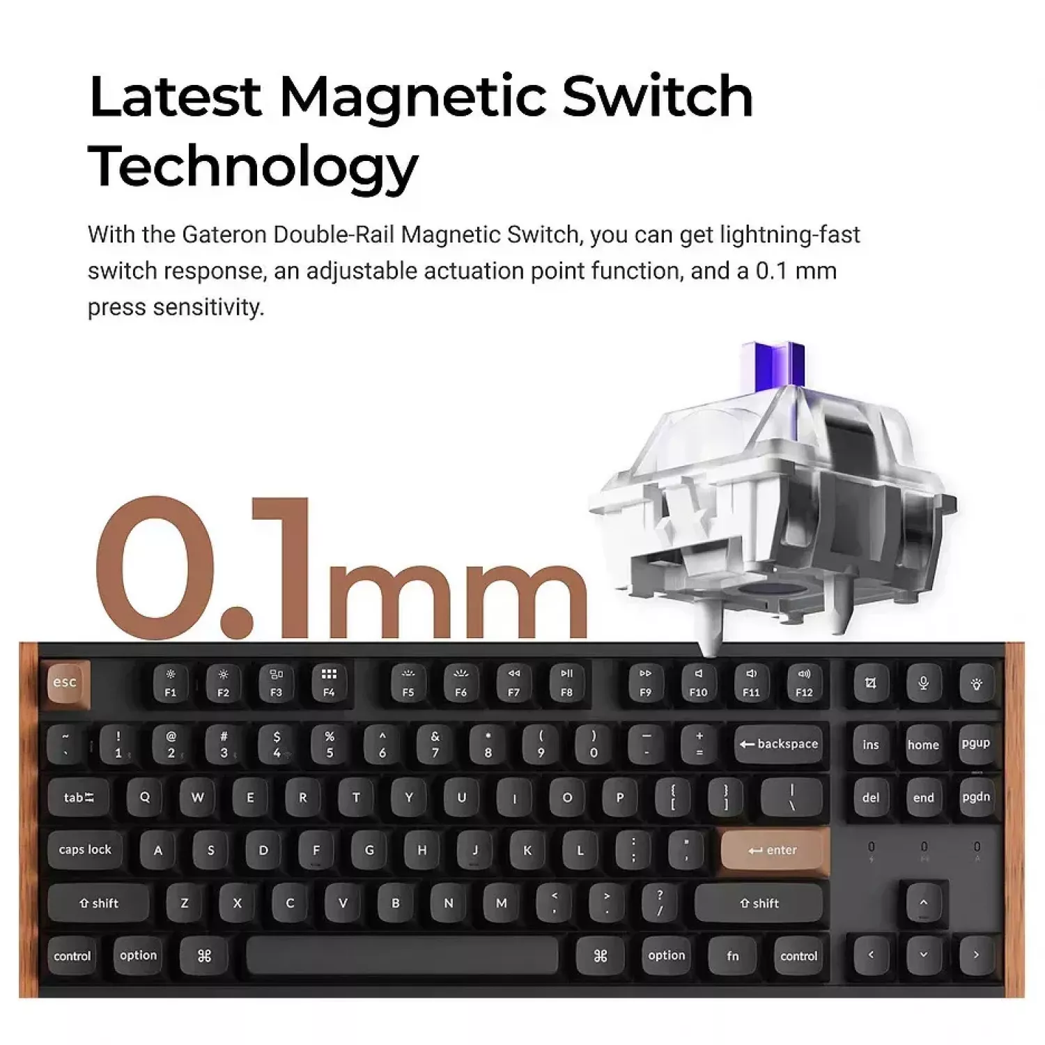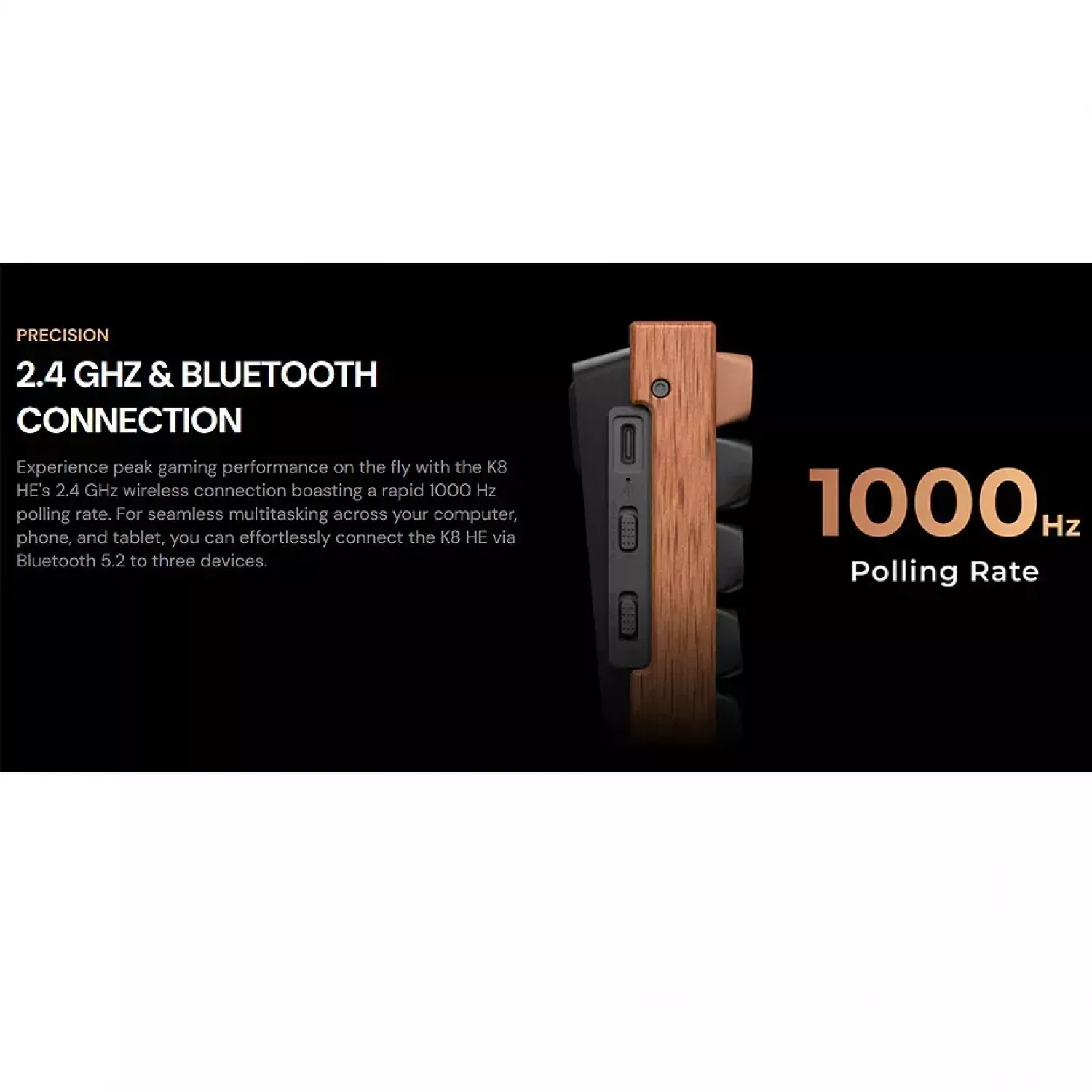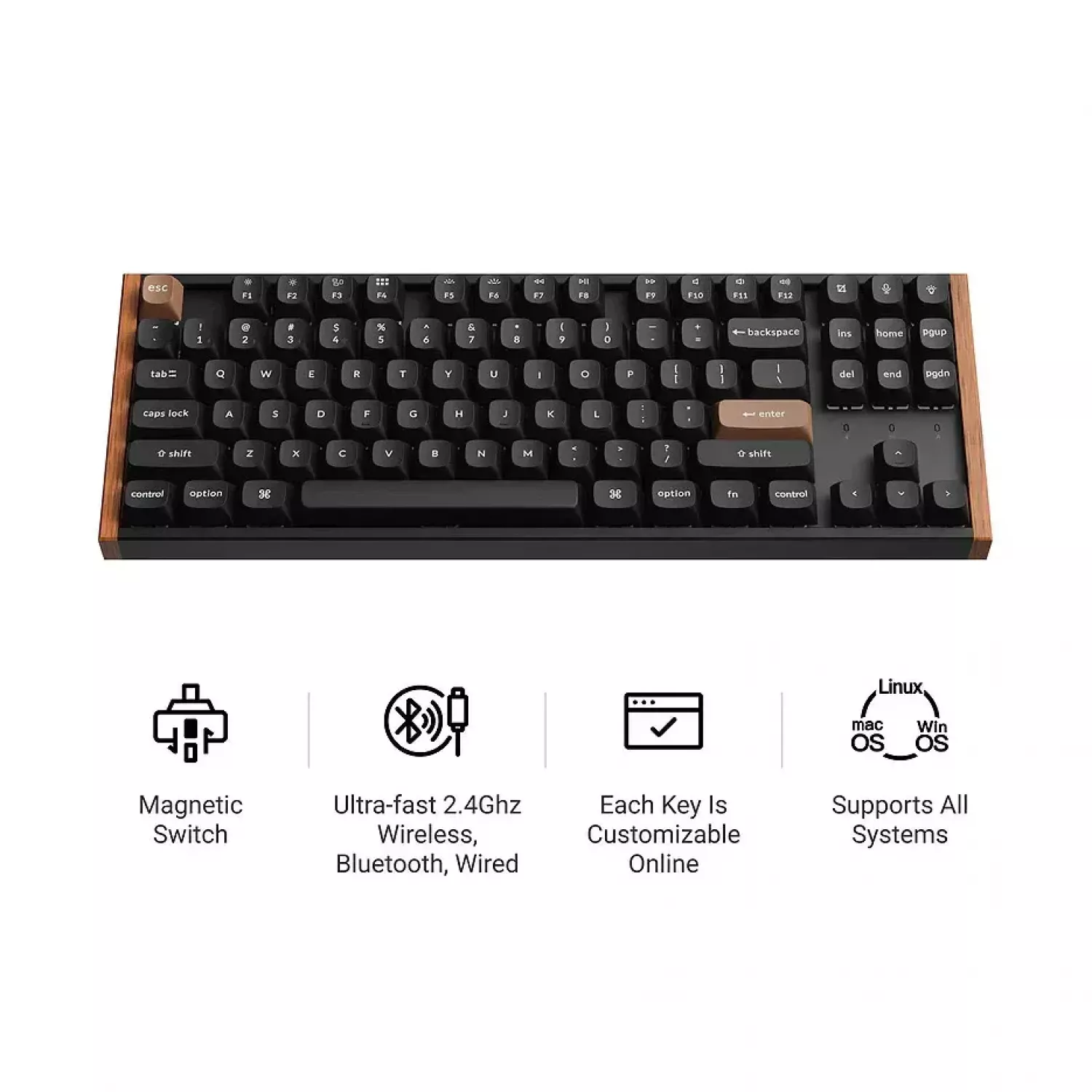 Keychron K8 HE QMK Wireless Magnetic Switch Custom Keyboard (K8H-F1), Special Edition Aluminum + Wood Frame, 80% TKL layout, RGB Backlight, Gateron Double-Rail Magnetic Nebula Switch, Hot-Swap, 2.4GHz&Bluetooth, USB Type-C, gamer (tastatura/клавиатур