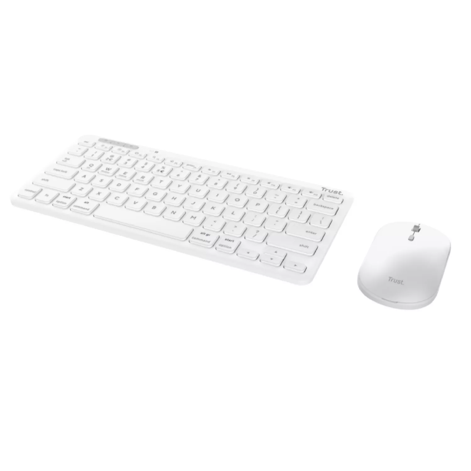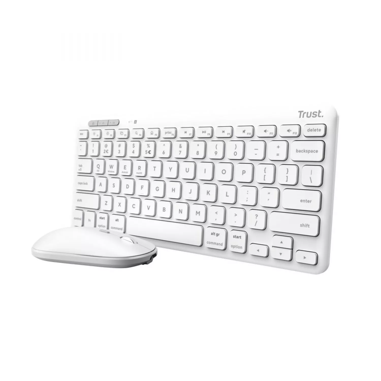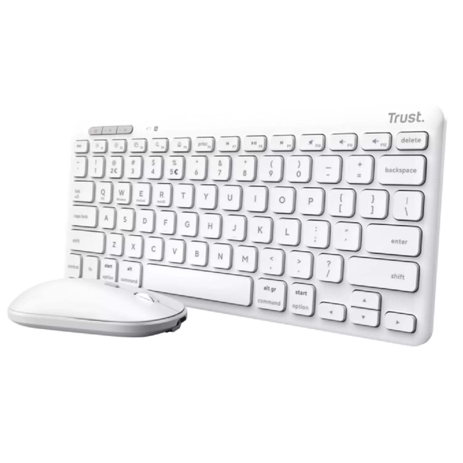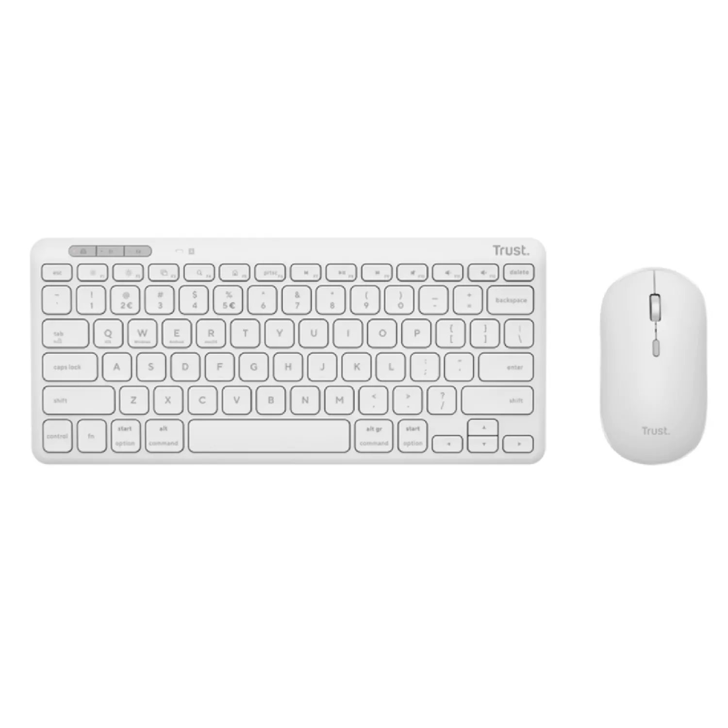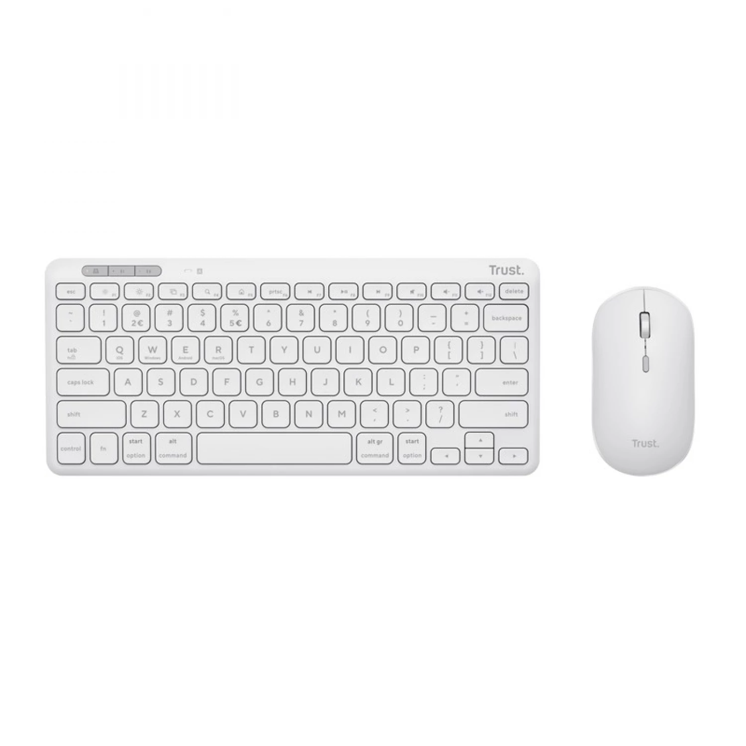 Комплект (клавиатура+мышь) trust lyra multi-device compact wireless keyboard and mouse set, rf 2.4ghz, bluetooth, 800-1600 dpi, silent click, fn keys, usb-a, usb-c, rechargeable battery, 301g, us, white