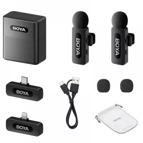 Microphone Wireless Boya BY-V3 Combo Ultracompact (Lighning / Type C - 2 mic), Black |