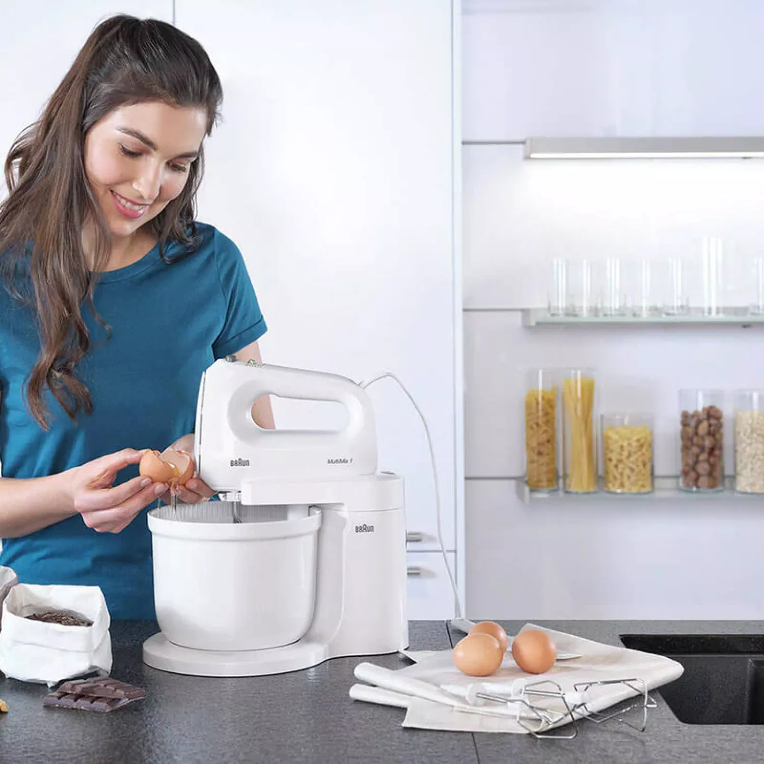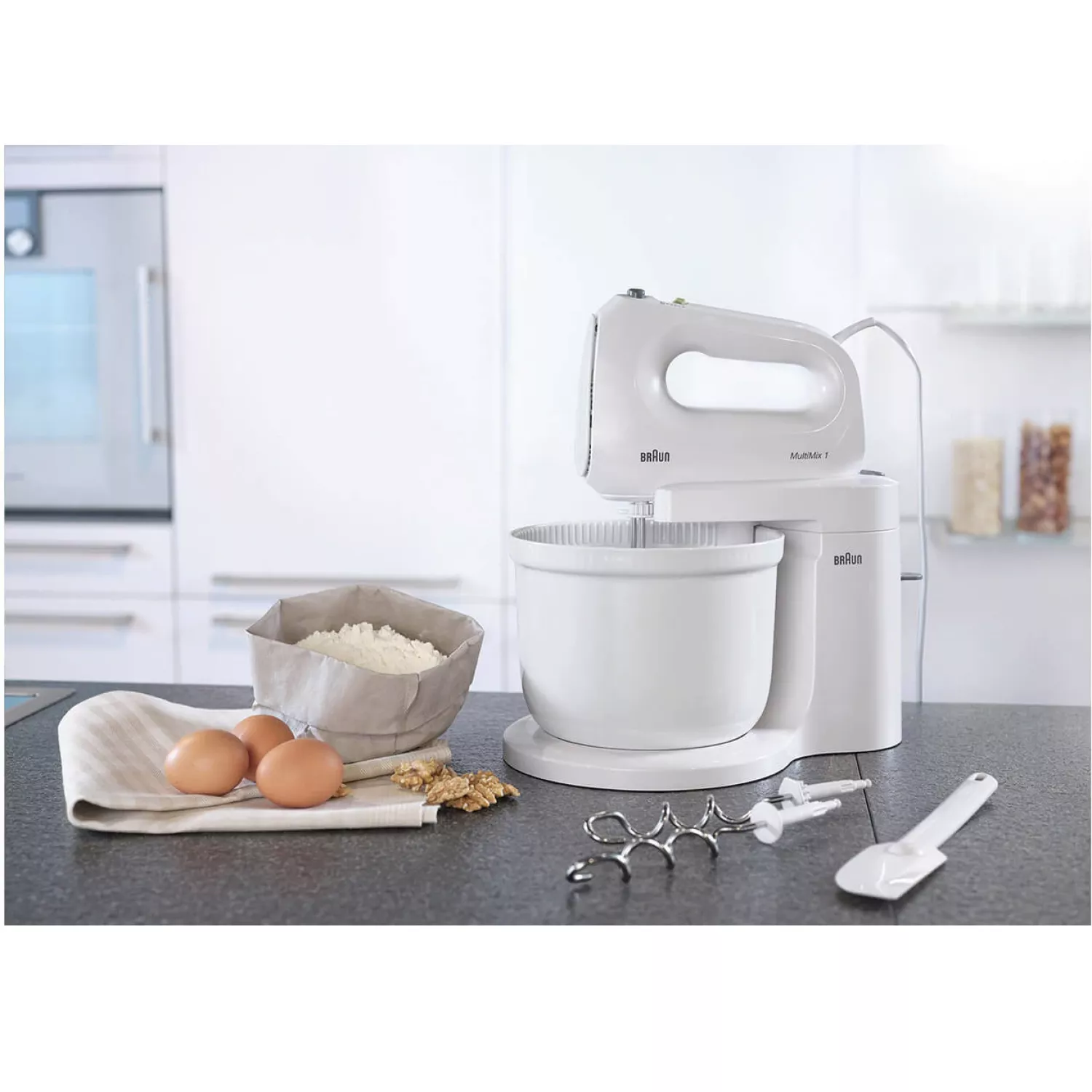Миксер braun hm1070wh, стационарный, 400 вт, 4 скорости, турборежим, белый