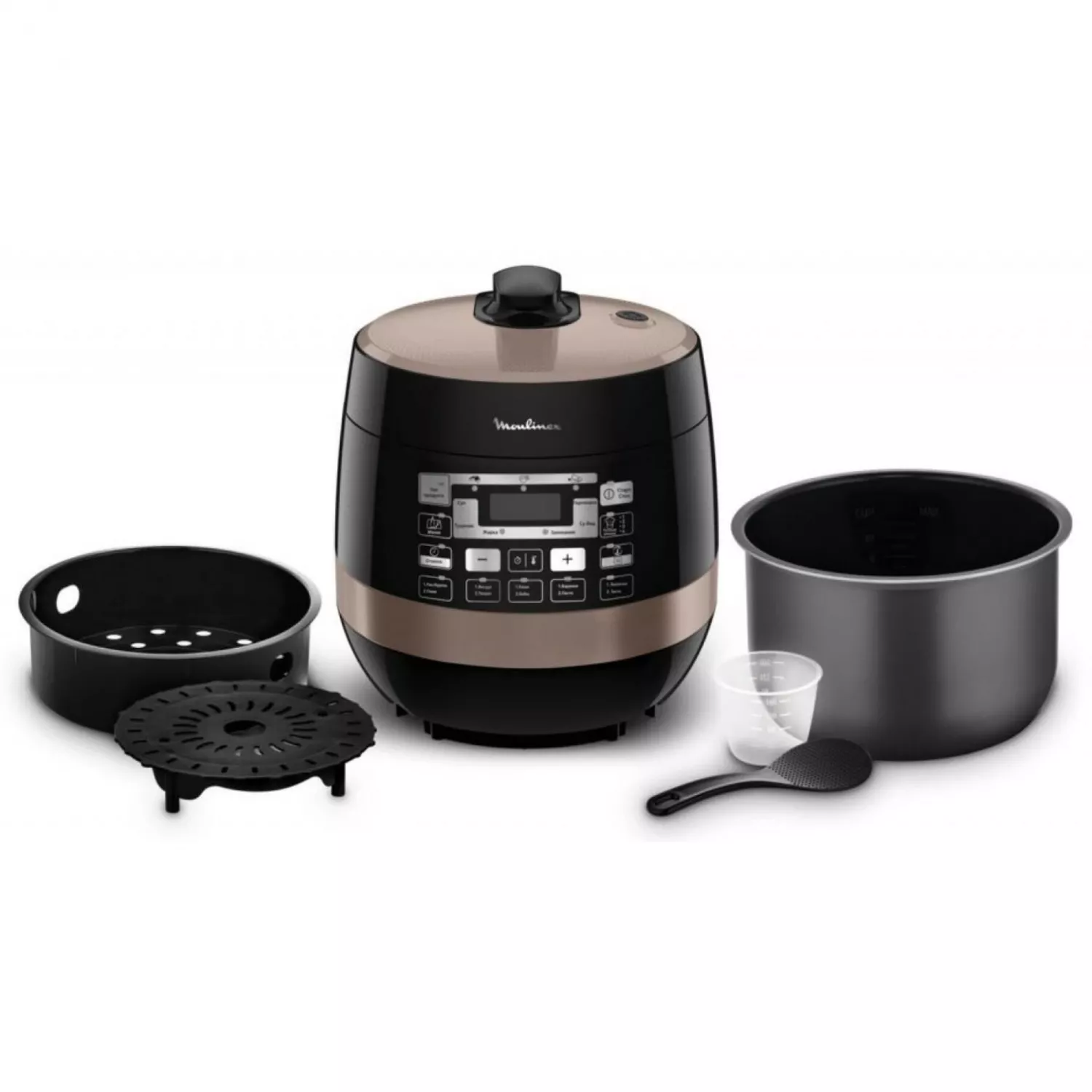 Мультиварка-скороварка moulinex ce430a34, 5 л, 1000 вт, 33 программы, жаркое, плов, каша, выпечка, пицца, десерт, суп, паста, чёрный, коричневый