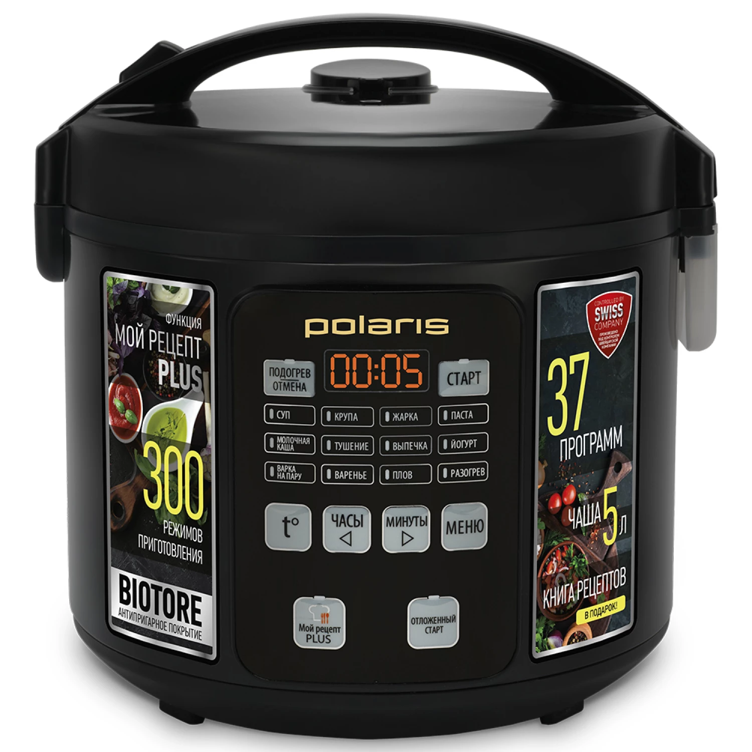 Мультиварка polaris pmc0567ad, 5 л, 750 вт, 37 программ, жаркое, плов, каша, выпечка, суп, паста, десерт, чёрный