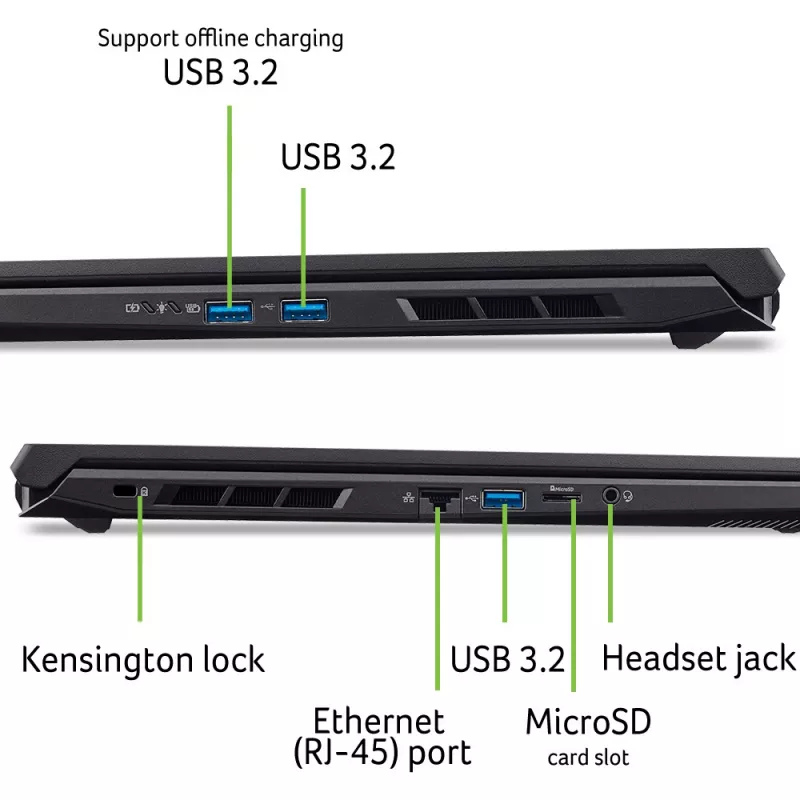 Характеристики для Игровой ноутбук ACER ACER Nitro V 17 AI ANV17-41 (NH.QZKEU.005) Obsidian Black 17.3” IPS FHD 144Hz (AMD Ryzen 7 260 AI 8xCore 3.8-5.1GHz, 32GB DDR5 RAM (0/2 slots free), 2TB (2x1TB) PCIe NVMe SSD, NVIDIA GeForce RTX 5070 8GB GDDR7, WiFi6E-AX/BT, Killer Ethernet, 76Wh, HD