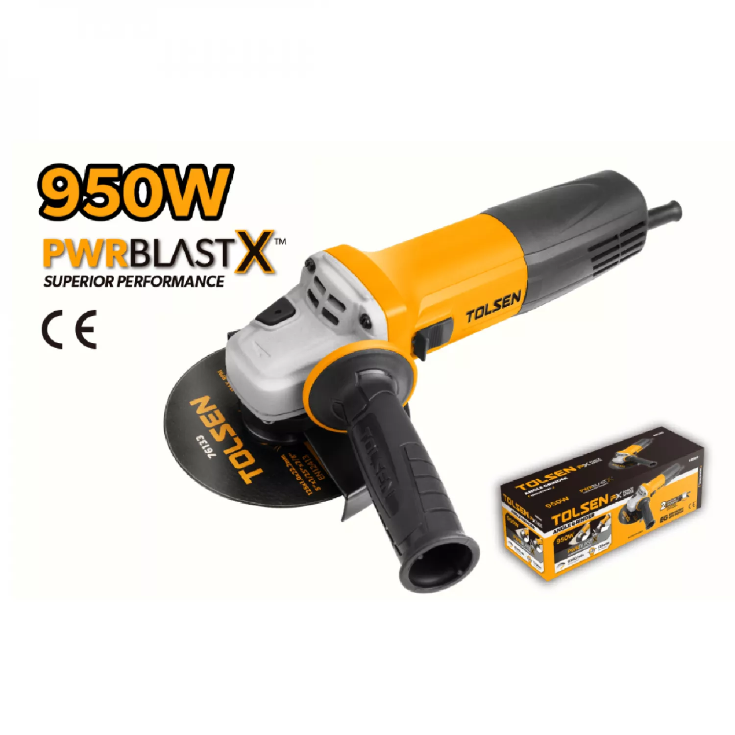 Угловая шлифмашина tolsen 125mm, 950 вт, 9500 об/мин