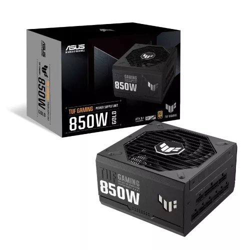 PSU ASUS TUF GAMING 850G, 850W, ATX12V V3.1, 80 PLUS® Gold, Full Modular, Protective PCB coating, Military-grade comp, 0db Technology, Dual-ball 120mm Axial-tech Fan with PWM, +12V (70.8A), 20+4 Pin, 2xCPU(4+4Pin), 5x SATA, 3xPCI-E(6+2pin), 4x Periph |