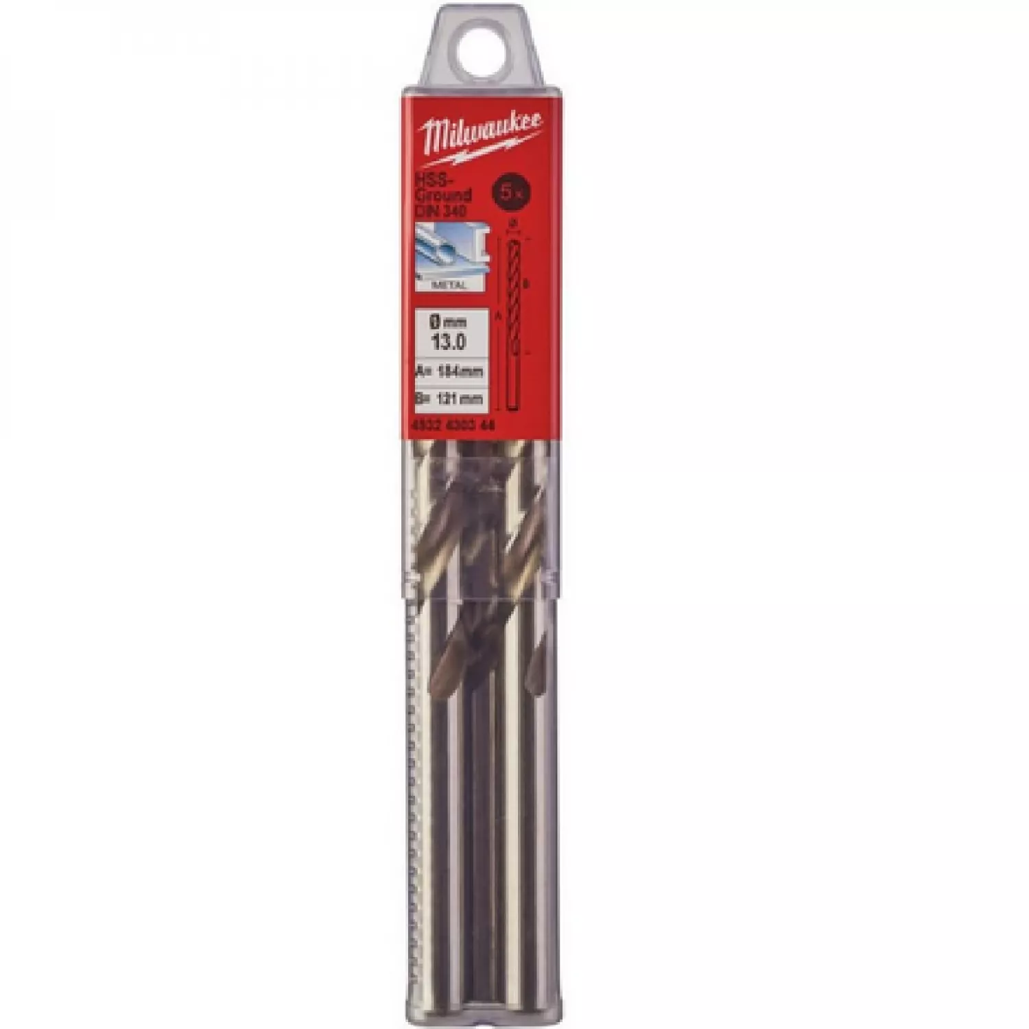 Характеристики для Набор сверел MILWAUKEE по металлу HSS-G DIN340, 13 мм