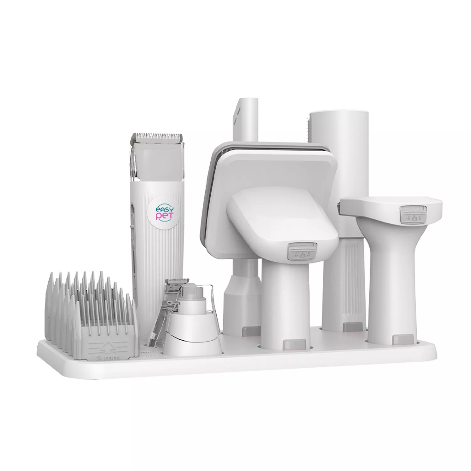 Аксессуары: щетка для ухода, щетка для вычесывания шерсти, электрическая машинка для стрижки с 6 насадками-гребнями (23 мм, 18 мм, 12 мм, 9 мм, 6 мм и 3 мм), точный триммер, электрическая пилка для ногтей, щетка для чистки одежды и ковров, насадка, USB-зарядное устройство для устройства.