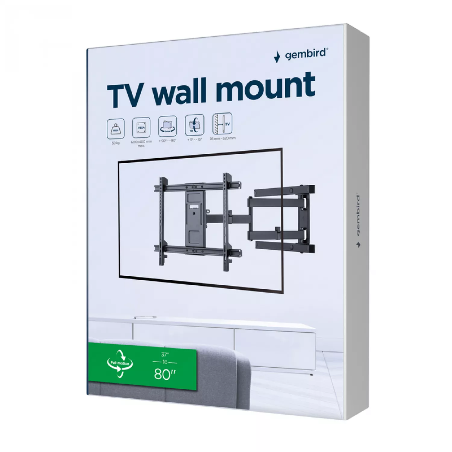 Характеристики для Настенное крепление GEMBIRD Wall Mount Gembird "WM-80ST-05" Black 37"-80", 50kg, VESA:up 600x400, Wall dist:76~620mm, ±50°
