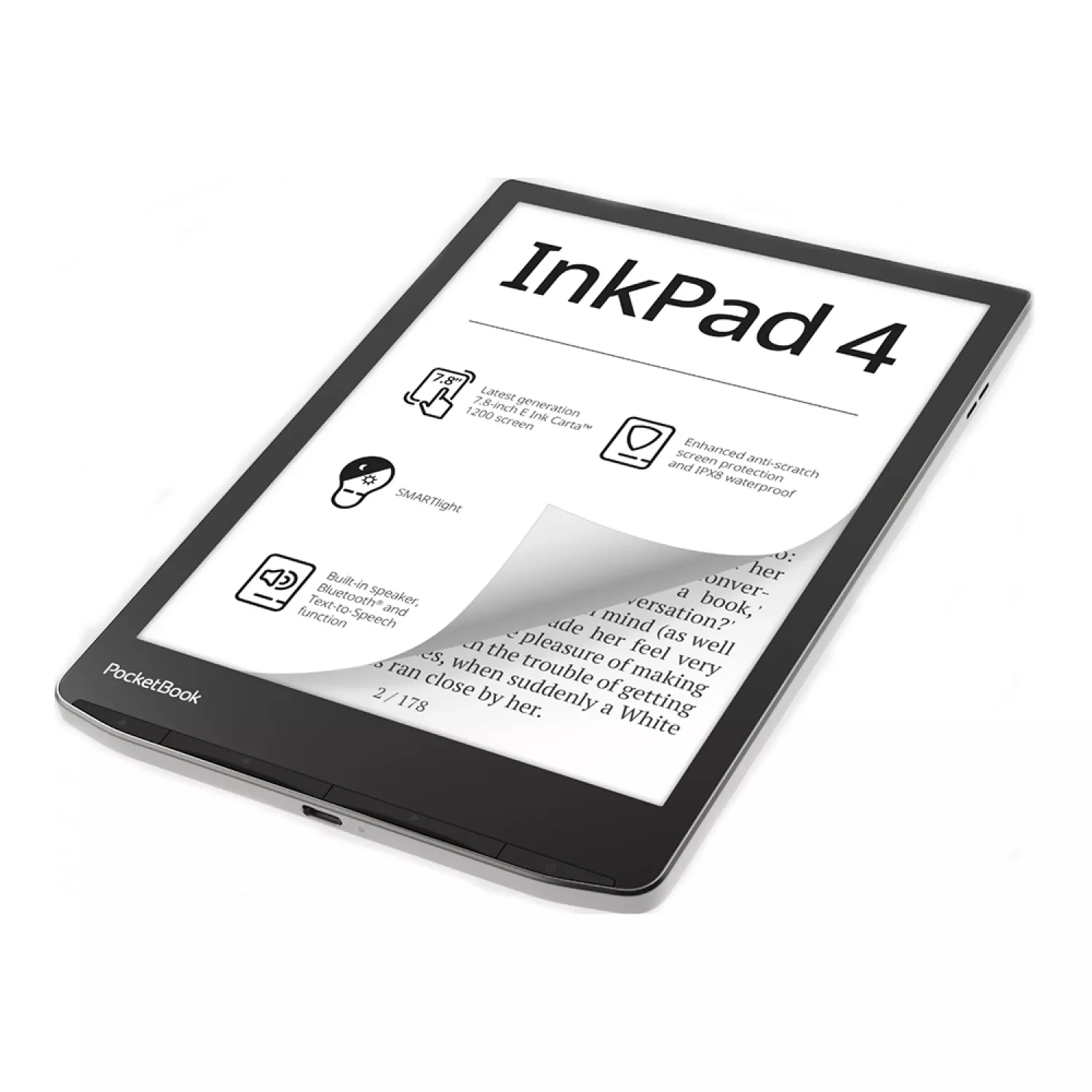 Планшет e-ink pocketbook inkpad 4, metallic grey, 7,8" e ink carta