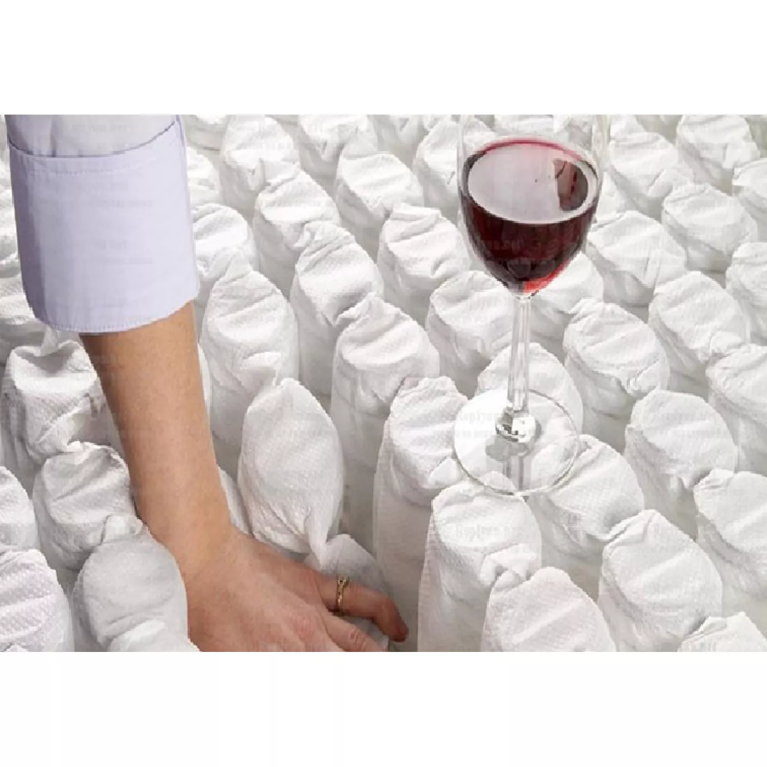 Arcurile care intră în structura saltelei sunt de tip Bonell, interconectate cu spirale de sârmă din oțel carbon 1,4 mm. Între rândurile de arcuri sunt amplasate 3 plăci confecționate din poliuretan cu o densitate de 28 kg/m³ și o grosime de 5 cm. Sârma de oțel este realizată prin deformare elastică pentru a oferi o rezistență elastică foarte bună în timp. Arcurile (280 buc/m²) sunt acoperite cu un start de pâslă dură cu grosimea de 3,5 mm, peste care este aplicat un rulou de poliuretan cu grosimea de 3 cm și densitatea de 24 kg/m³. Rigidizarea perimetrică a saltelei ortopedice de lux este conferită de poliuretanul ”sistem box”. Marginile anti lăsate ale saltelei sunt confecționate din plăci de poliuretan (semi-latex) cu grosimea de cm și densitatea de 35 kg/m³ fiecare. Materialul de acoperire este mătase Jakard, un amestec de bumbac matlasat cu strat de material siliconizat amplasat pe un suport de burete poros, care permite circulația aerului, astfel împiedicând transpirarea saltelei și formarea de miros urât. Pe lângă toate, tot ansamblul saltelei este tratat împotriva mucegaiului și acarienilor. Pereții laterali sunt dotați cu 4 butoni de ventilare pentru o igienă mai eficientă a saltelei dumneavoastră.