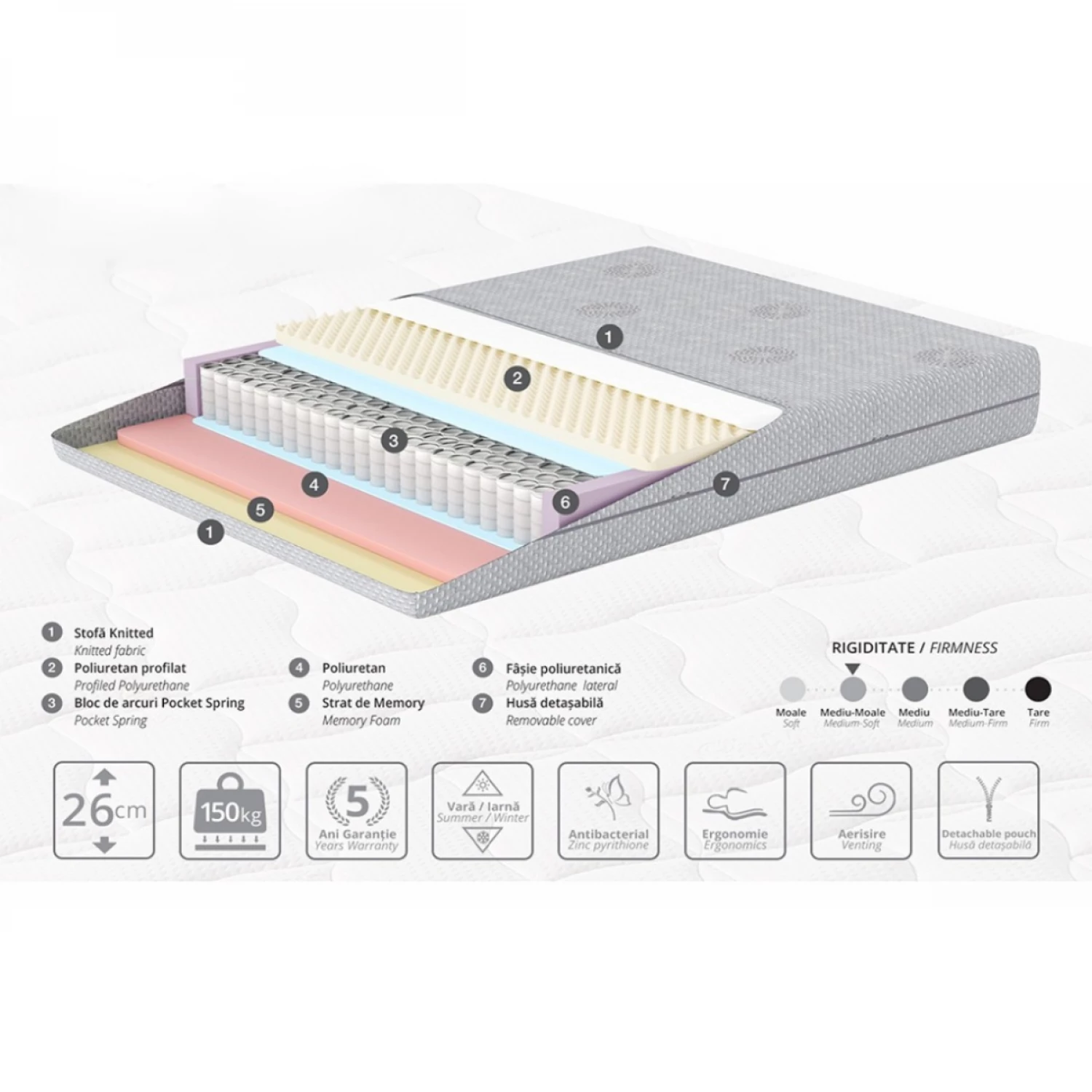 Caracteristici pentru Saltea Artvent BOSS, 160x200x26