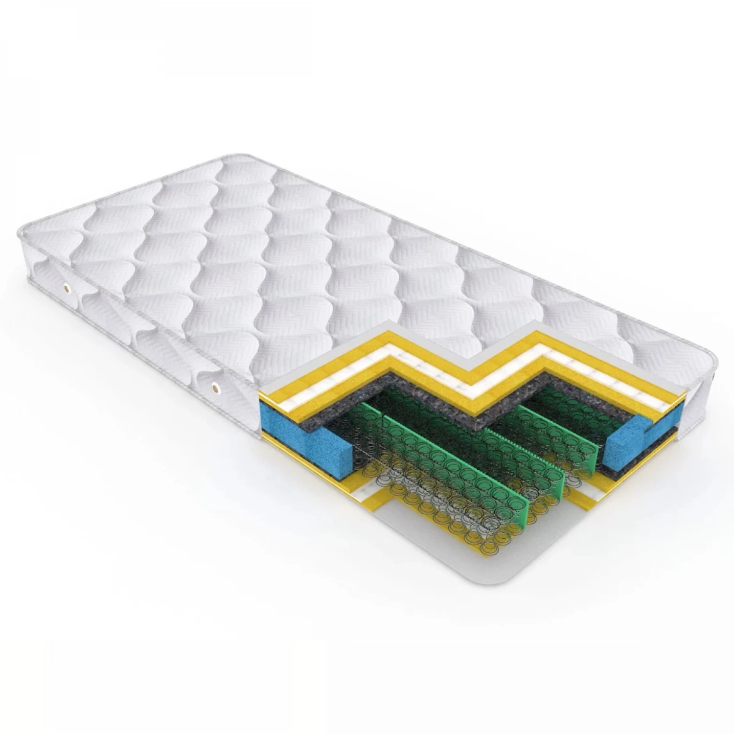 Peste plasa de arcuri (miezul elastic), este pus un strat de suport textil pe ambele feţe, pâslă thermofelt – 1000 gr/m2, apoi un strat de spumă poliuretanică cu densitatea de 21 kg/ m3, cu o grosime de 1 cm, lipită cu adeziv special, ecologic, conform standartelor europene.