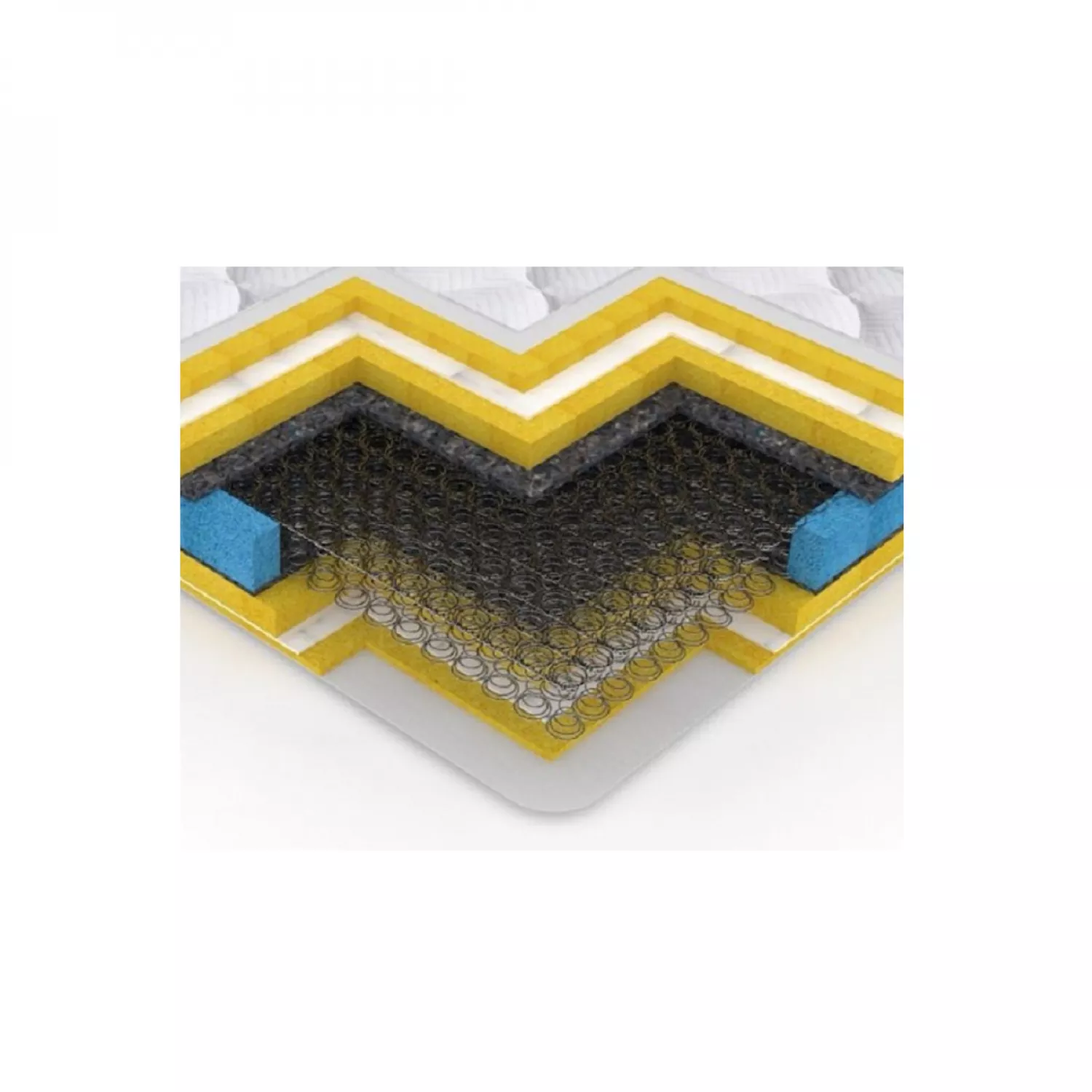 - Peste plasa de arcuri (miezul elastic), este pus un strat de suport textil pe ambele feţe, pâslă thermofelt - 1200gr/m2, apoi un strat de spumă poliuretanică, cu densitatea de 28 kg/ m3, cu grosimea de 4 cm, lipită cu adeziv special, ecologic, conform standartelor europene.