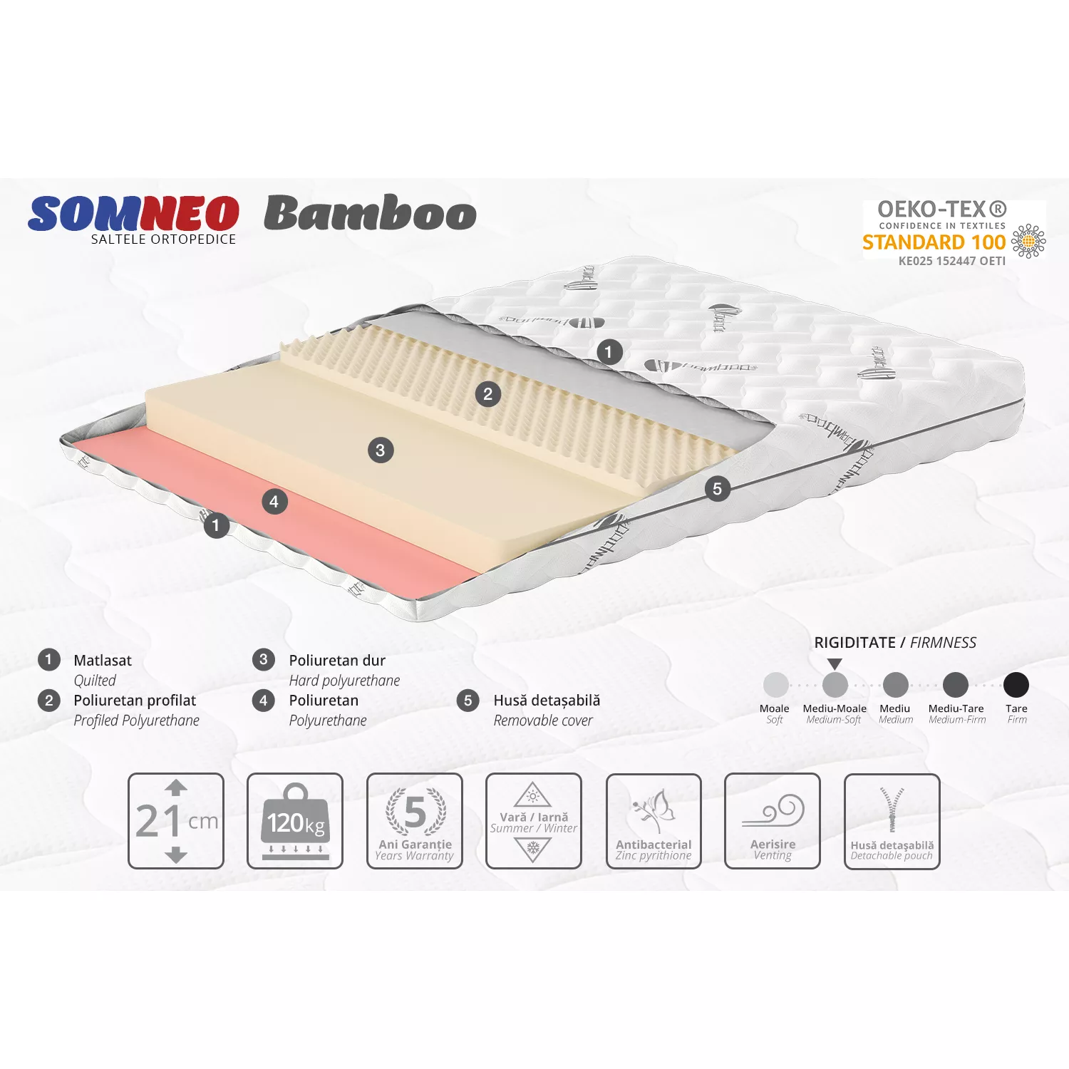 Caracteristici pentru Saltea Somneo BAMBOO, 160x190x21