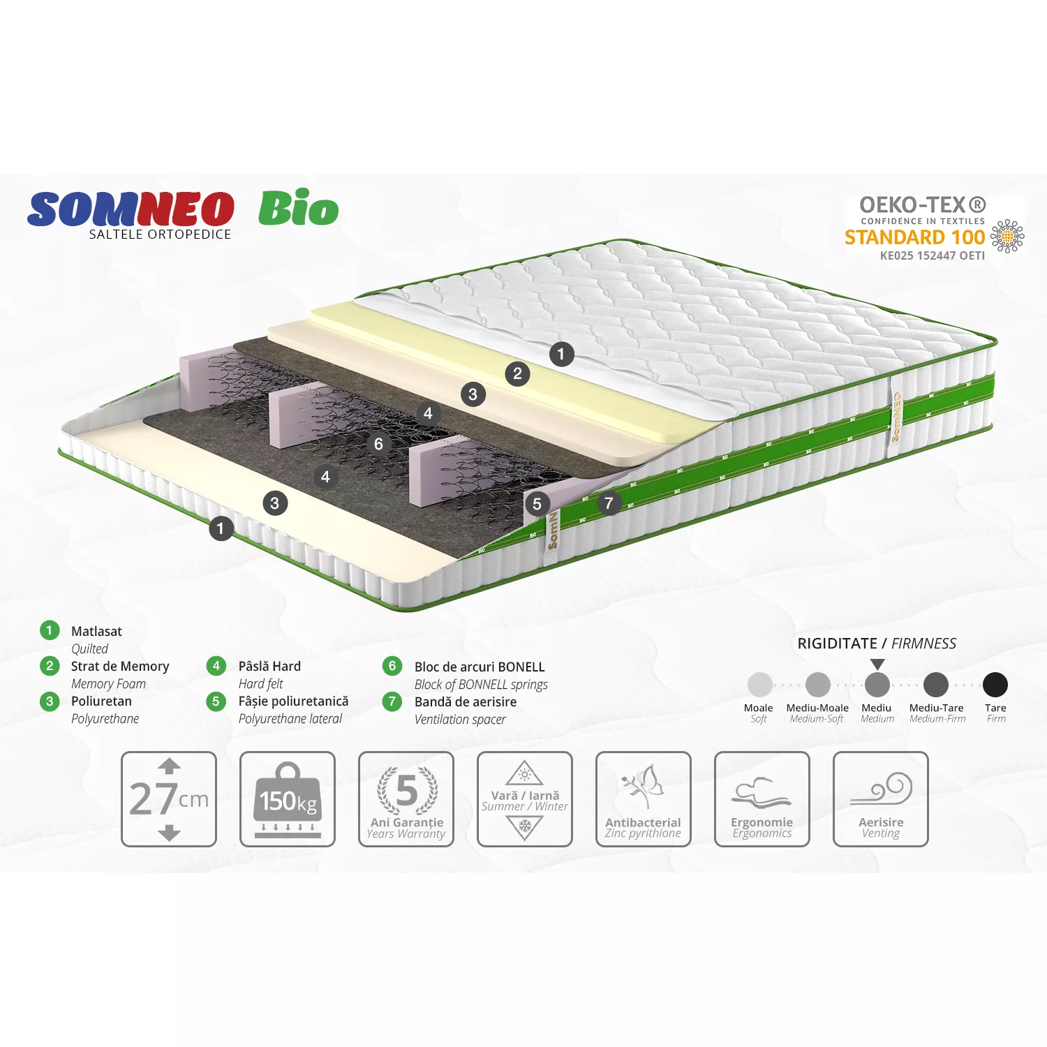 Caracteristici pentru Saltea Somneo BIO, 160x200x27