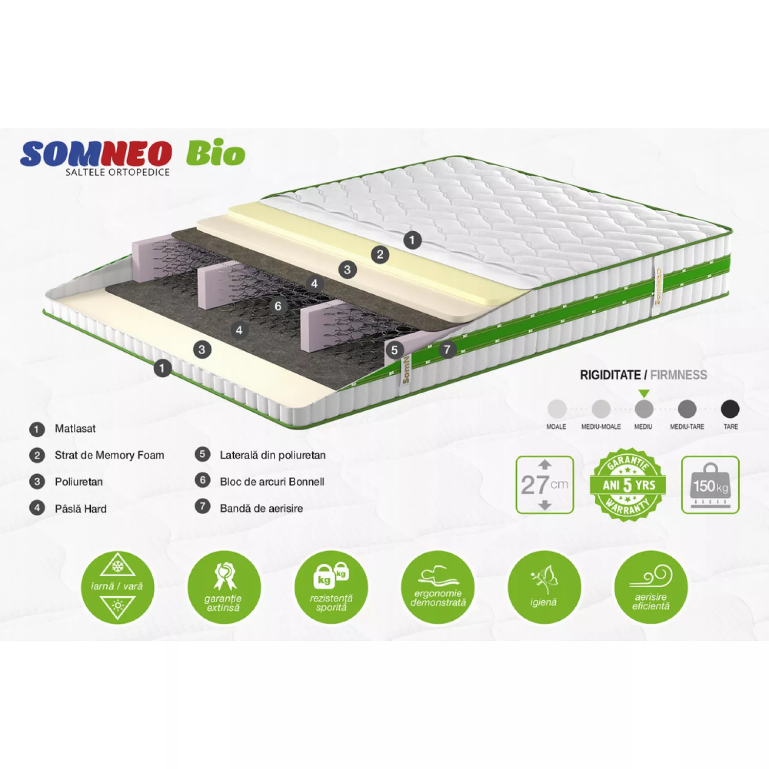 Caracteristici pentru Saltea Somneo BIO, 180x190x27