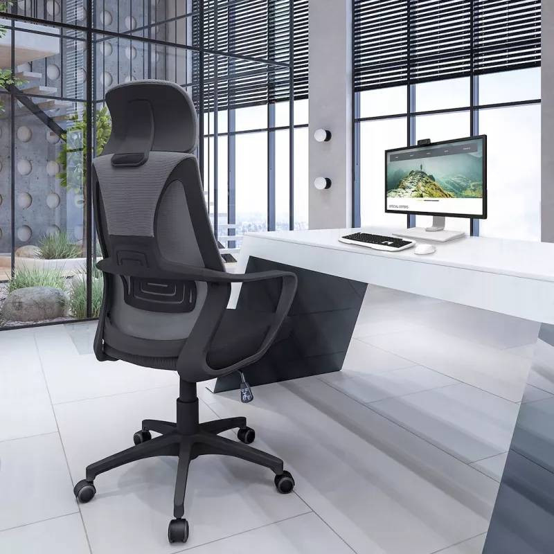 SCAUN DE BIROU CU ROTI , FUTURA, 125X61X49CM, INALTIME REGLABILA, NEGRU/GRI CM-270695 |