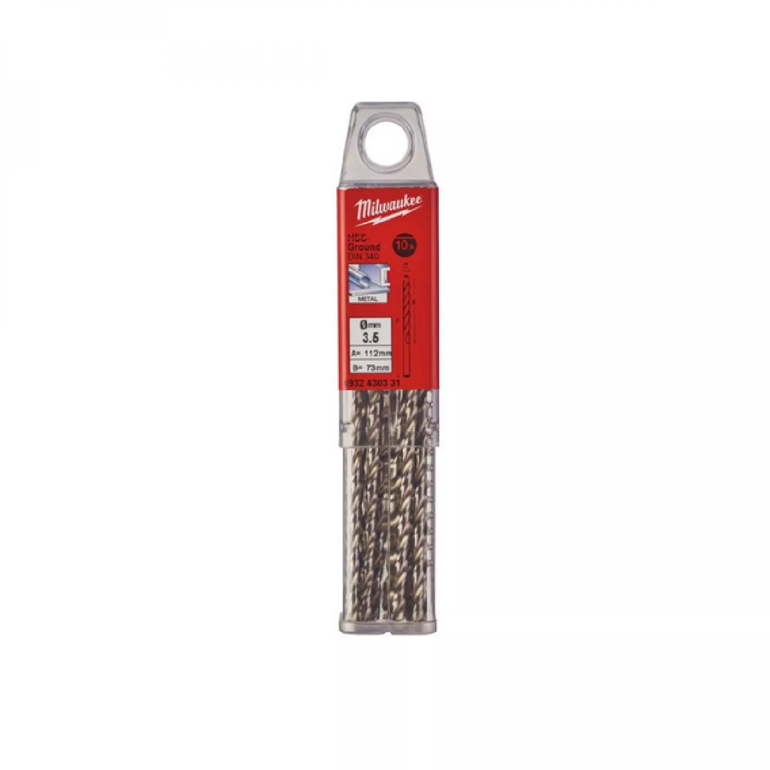 Caracteristici pentru Set burghiuri MILWAUKEE pentru metal HSS-G DIN340, 3.5 mm
