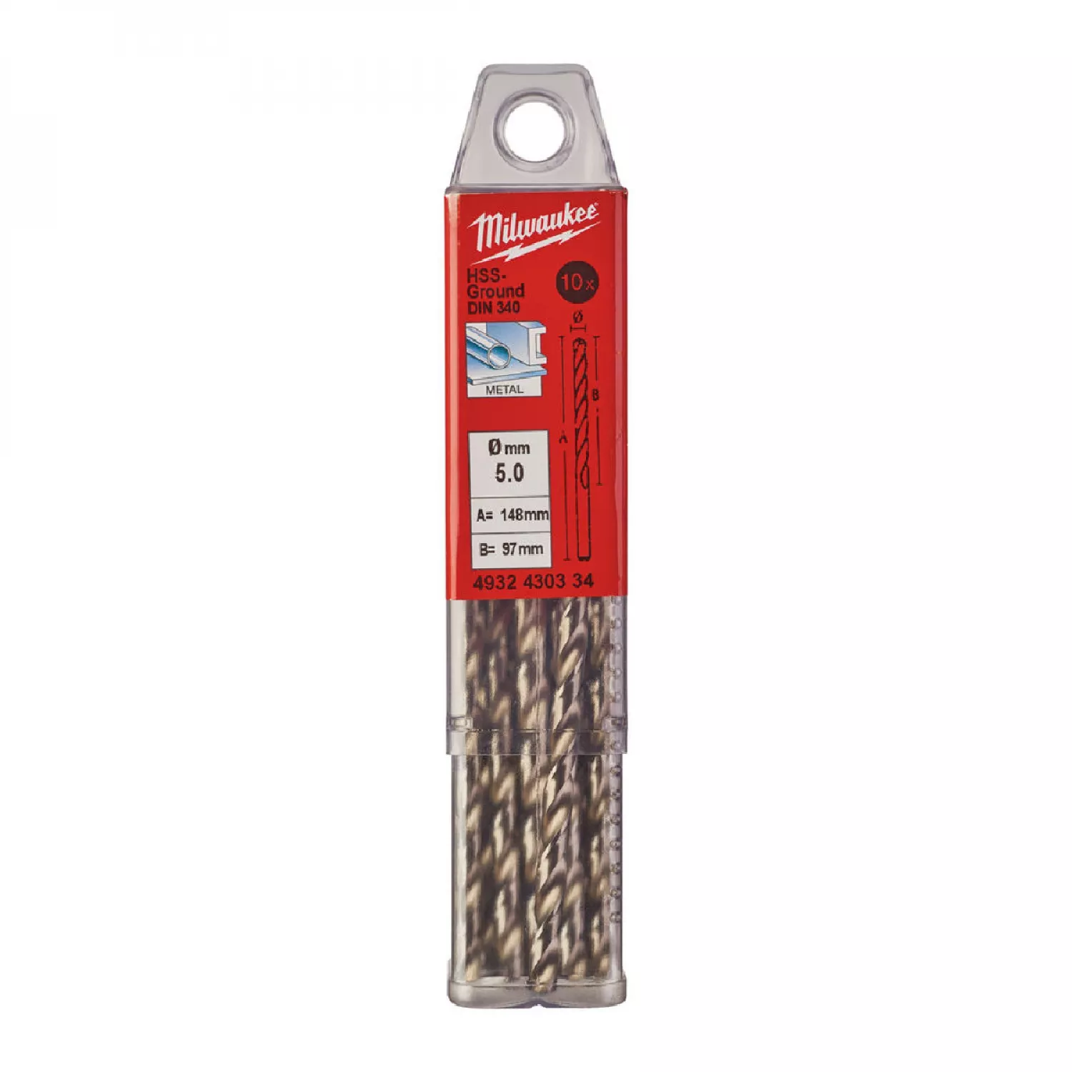 Caracteristici pentru Set burghiuri MILWAUKEE pentru metal HSS-G DIN340, 5 mm
