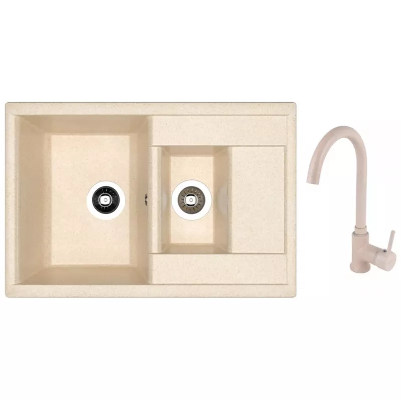 Caracteristici pentru Set chiuveta de bucatarie si baterie Dr.Gans Astra 760K + SanDonna F 7073, Granit compozit, Bej, 76 x 51