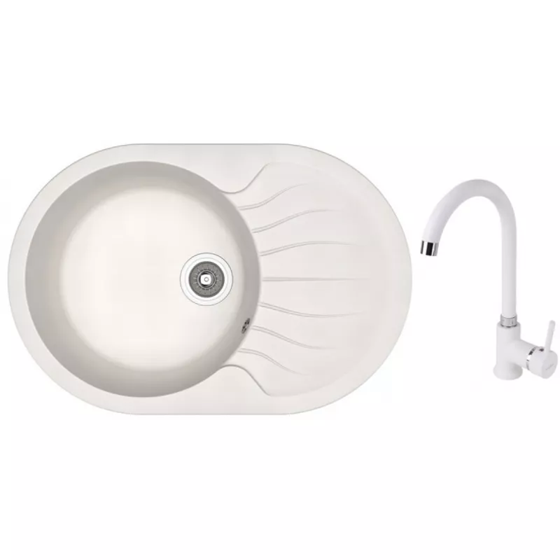 Set chiuveta de bucatarie si baterie Dr.Gans Berta 760 + SanDonna F 7073, Granit compozit, Alb, 76 x 51