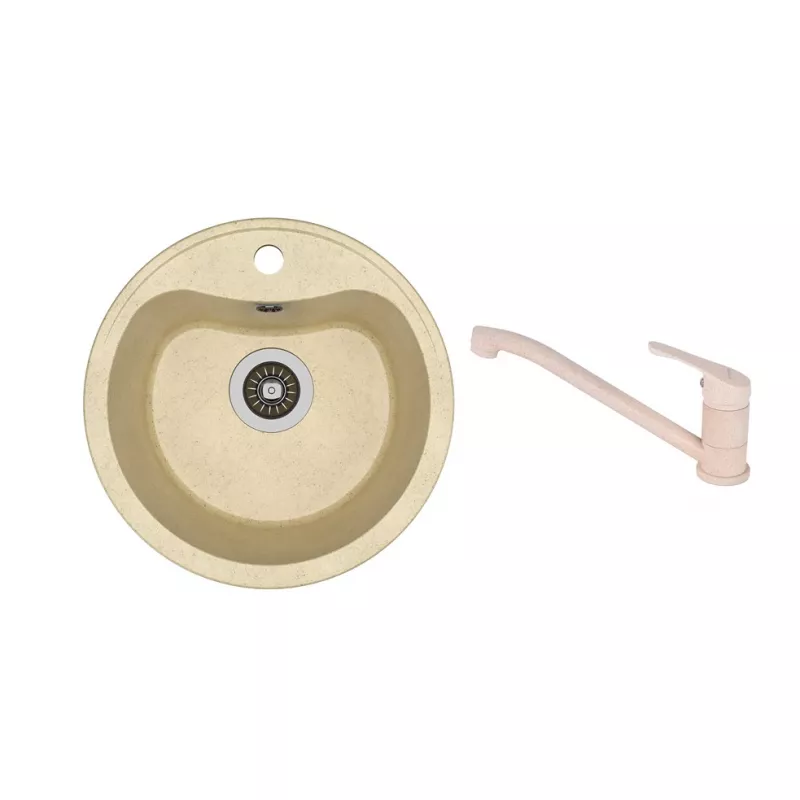Caracteristici pentru Set chiuveta de bucatarie si baterie Dr.Gans DORA + SanDonna F 1066, Granit compozit, Bej, 43.5 x 43.5