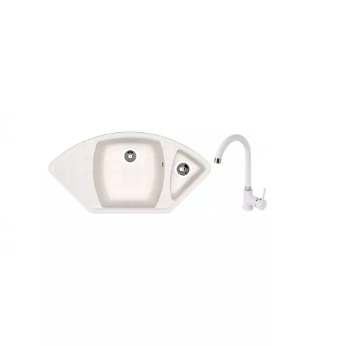 Set chiuveta de bucatarie si baterie Dr.Gans Gabi + SanDonna F 7073, Marmura artificiala, Alb, 101.5 x 51