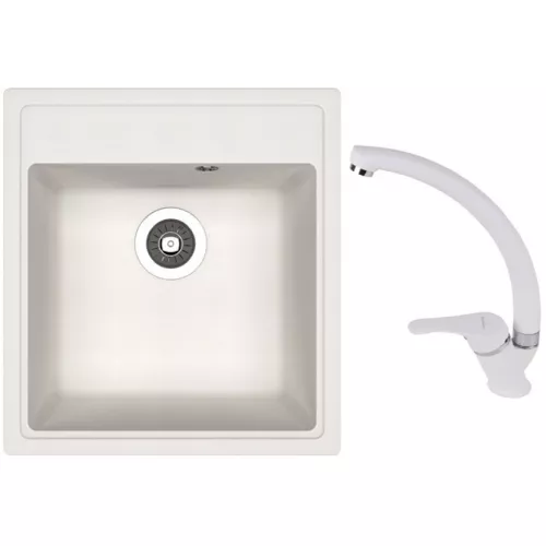 Set chiuveta de bucatarie si baterie Dr.Gans Nika 470 + SanDonna F 1069, Granit compozit, Alb, 47 x 51