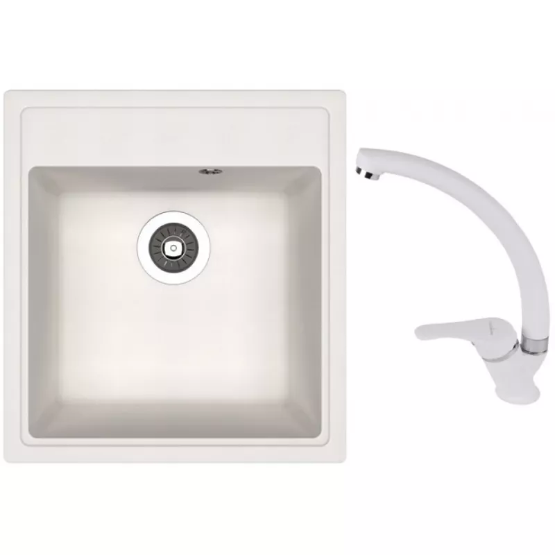 Set chiuveta de bucatarie si baterie Dr.Gans Nika 470 + SanDonna F 7103, Granit compozit, Alb, 47 x 51