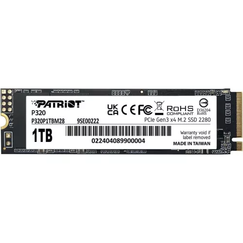 M.2 NVMe SSD 1.0TB Patriot P320, Interface: PCIe3.0 x4 / NVMe 1.3, M2 Type 2280 form factor, Sequential Read 3000 MB/s, Sequential Write 2200 MB/s, Random Read 290K IOPS, Random Write 260K IOPS, Thermal throttling, E-to-E Data path protection, TBW: 4