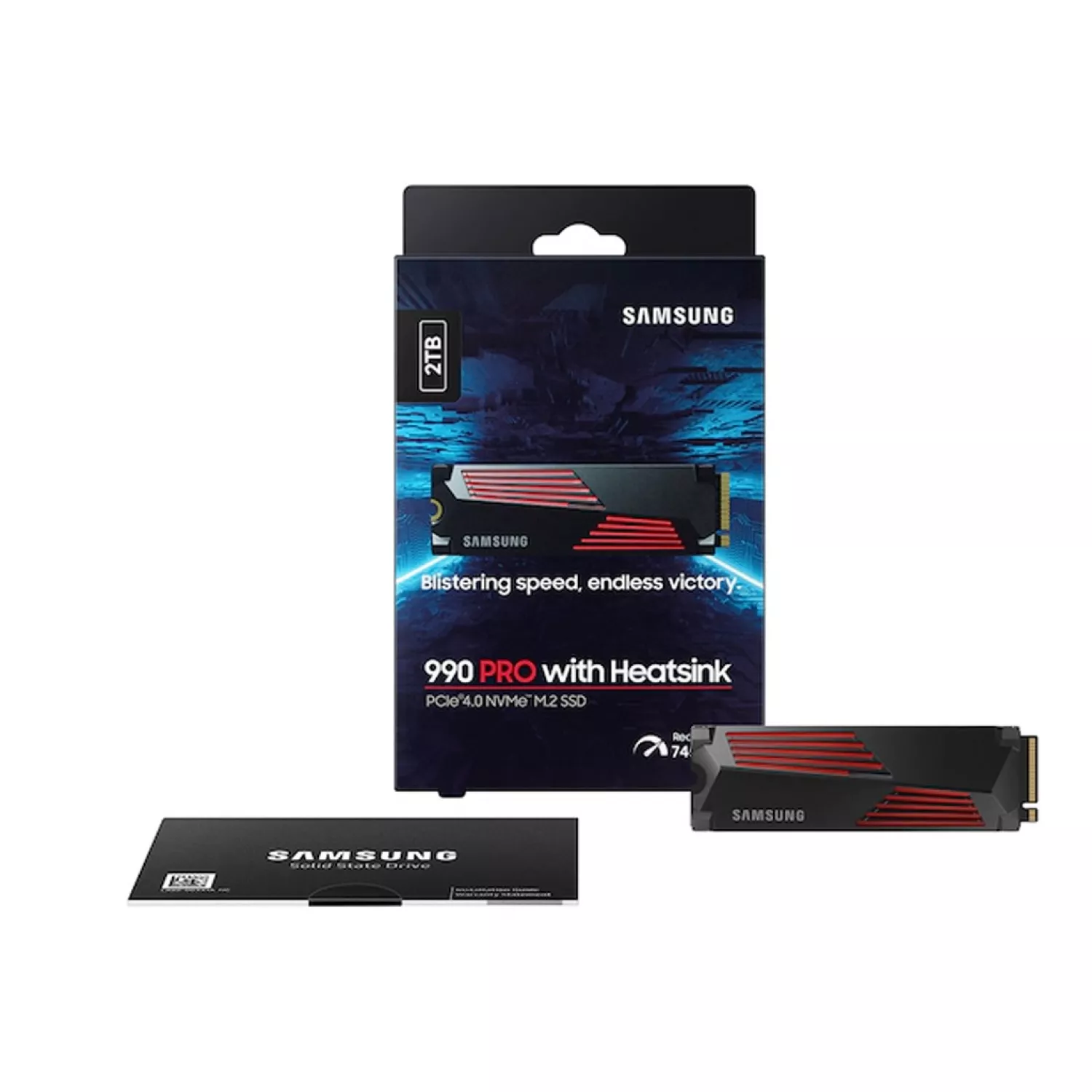 Ssd samsung m.2 nvme ssd 2.0tb ssd 990 pro w/heatsink, pcie4.0 x4 / nvme2.0, m2 type 2280 form factor, seq. read: 7450 mb/s, seq. write: 6900 mb/s, max random 4k: read /write: 1400,000/1550,000 iops, samsung in-house controller, 2gb lpddr4, v-nand 3-bit