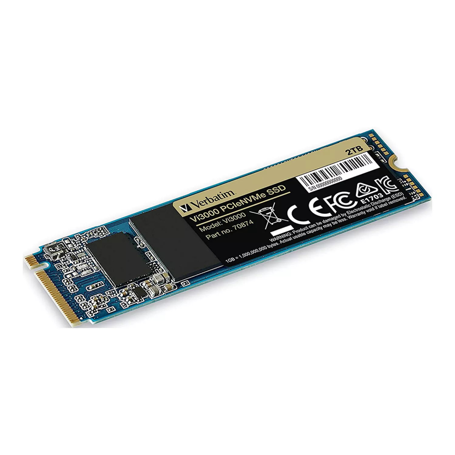 Ssd verbatim m.2 nvme ssd 2.0tb vi3000, interface: pcie3.0 x4 / nvme 1.3, m2 type 2280 form factor, sequential read 3300 mb/s, sequential write 3300 mb/s, random read 150k iops, random write 100k iops, phison e13t, tbw: 1500tb, 3d nand tlc
