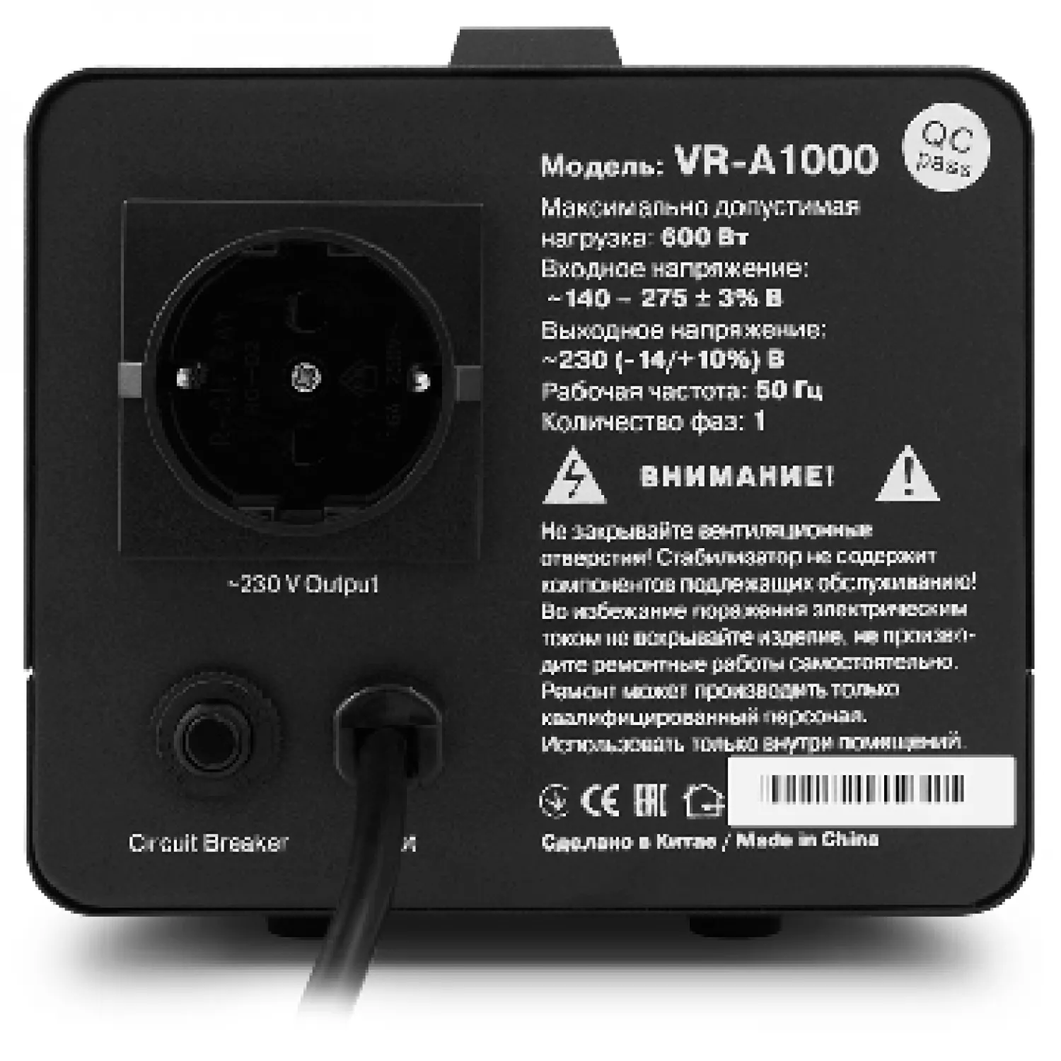 Caracteristici pentru Stabilizator SVEN VR- A1000, max.600W, Output sockets: 1 × CEE 7/4