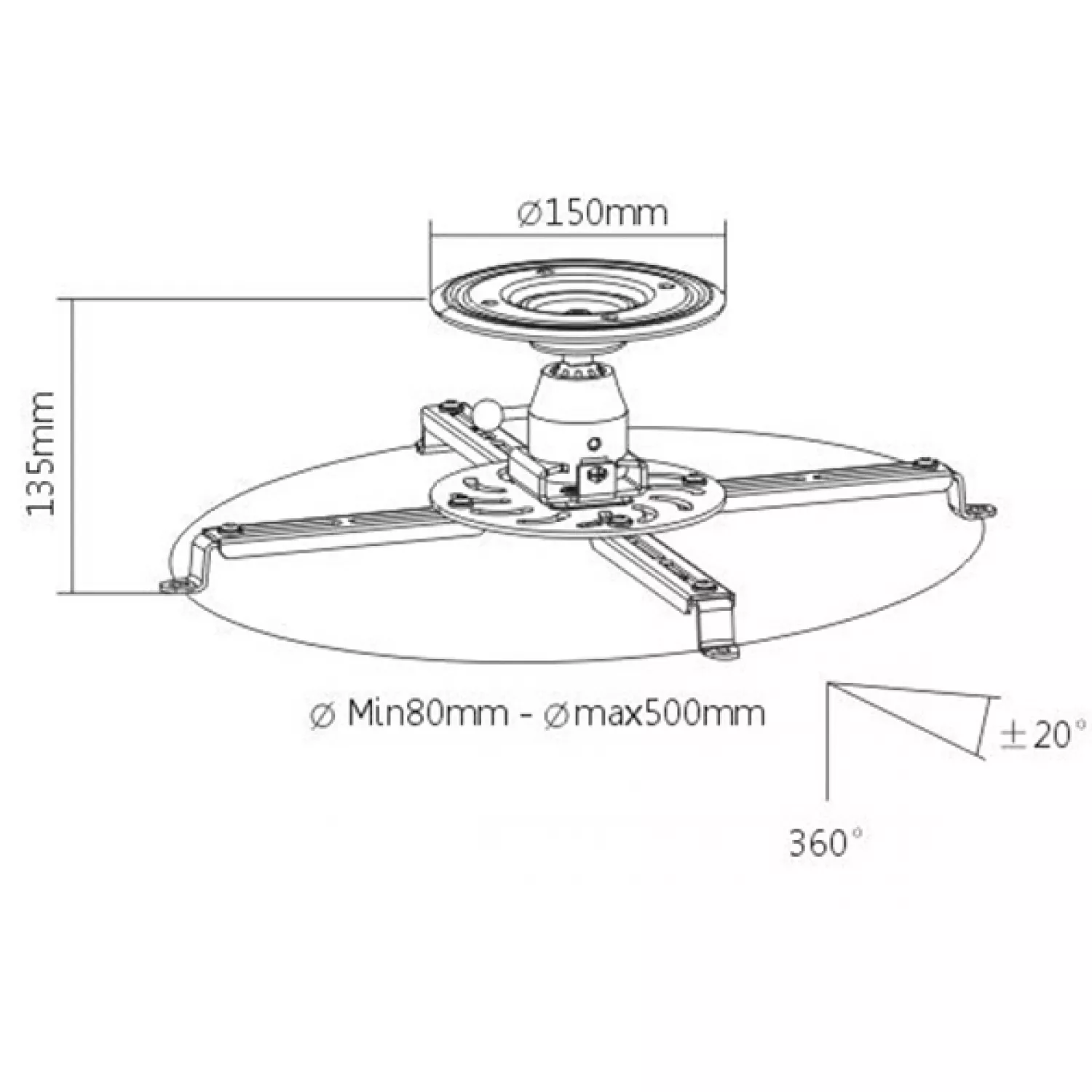 Caracteristici pentru Suport p-u proiector Sunne Sunne PRO300S Ceiling/ Bevel Projector Bracket, Ceiling to Projector 135mm, Tilt/Swivel-20°~+20°, 360 rotate max 25kg,