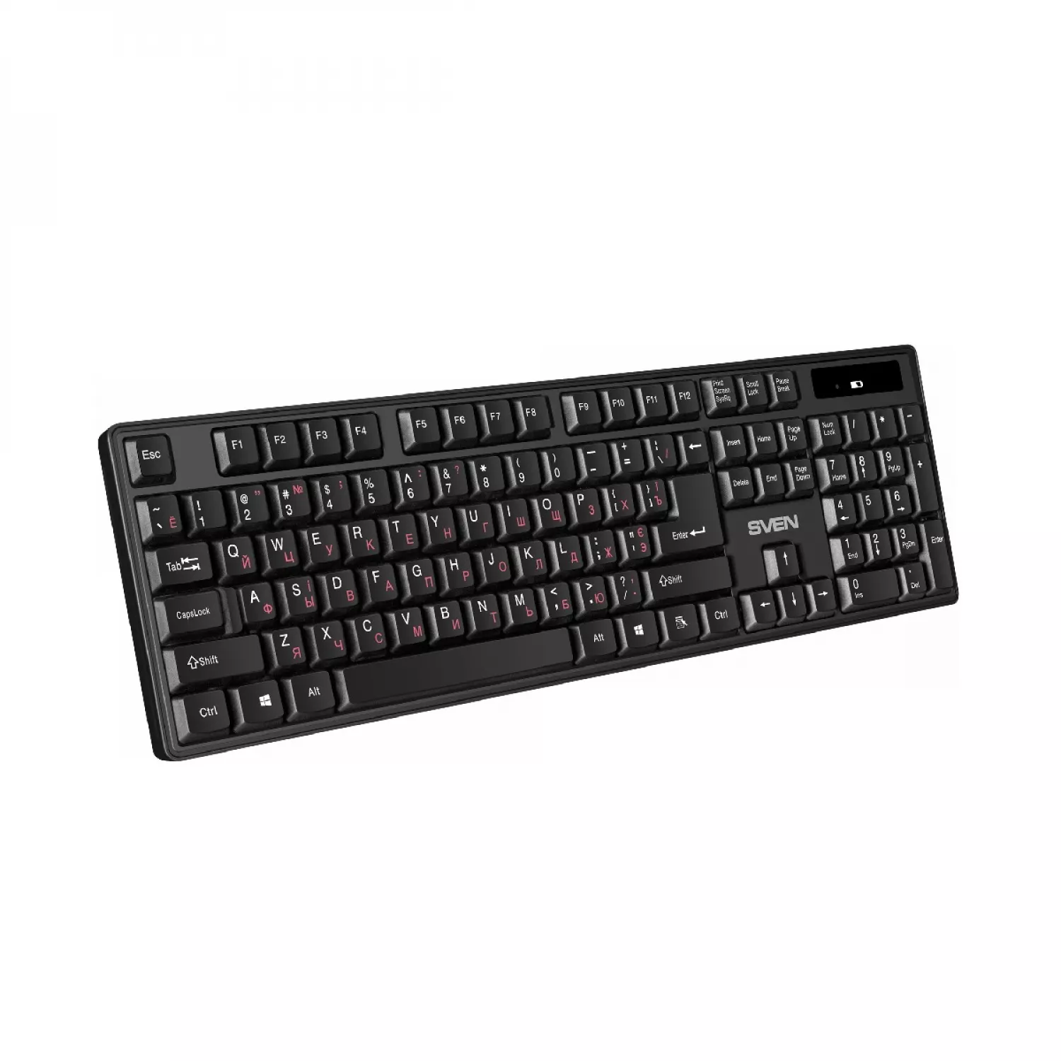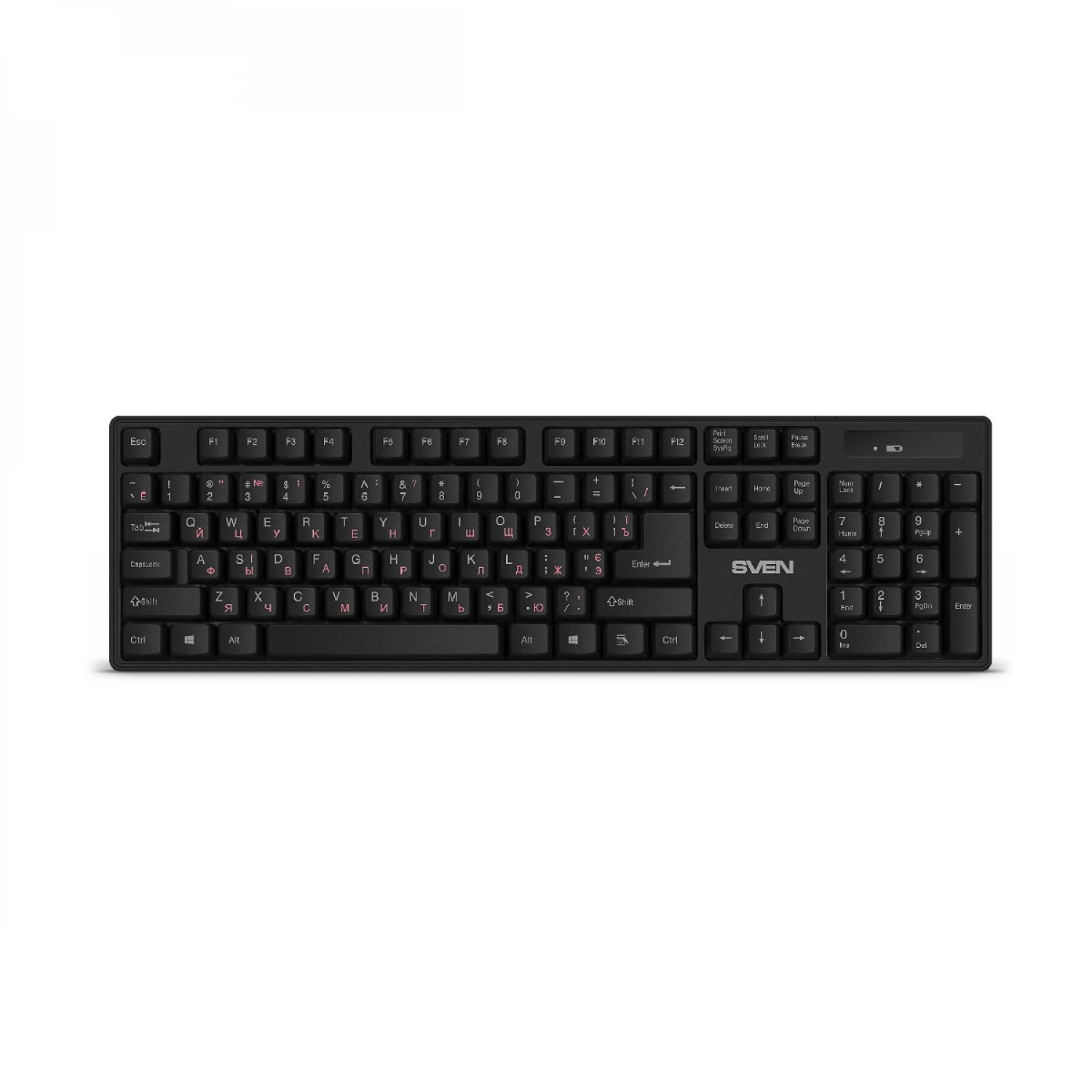 Caracteristici pentru Tastatura fara fir SVEN KB-C2100W, WIRELESS KEYBOARD, 2.4GHZ, MULTIMEDIA KEYBOARD (104 KEYS), LOW BATTERY INDICATOR, USB, BLACK, RUS/UKR/ENG
