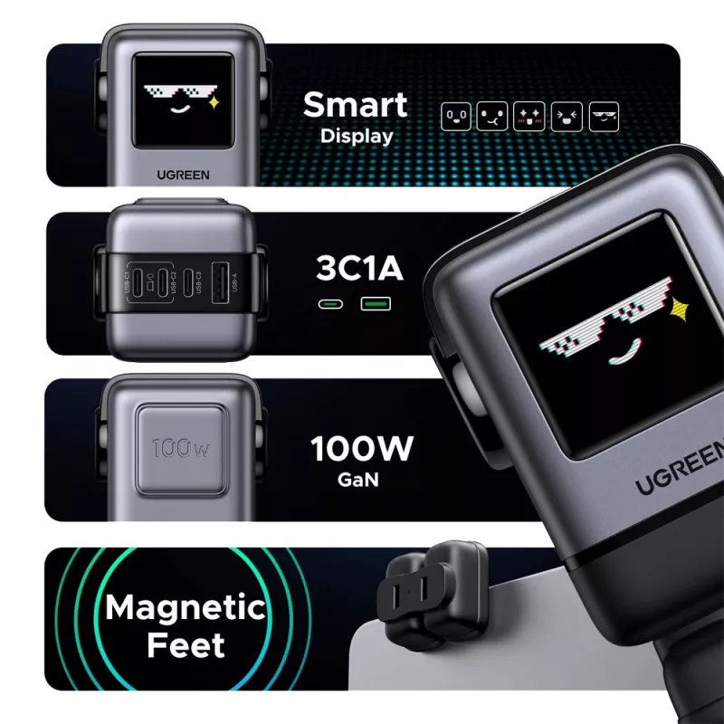 UGREEN UNO Robot GaN Quick Charger 3xType-C+1*USB-A 100W, Black |