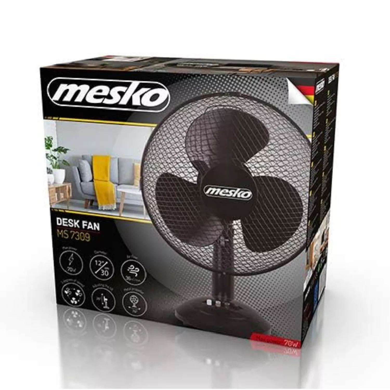 Ventilator mesko ms 7309, 70 w, 30 cm, 3 trepte, negru